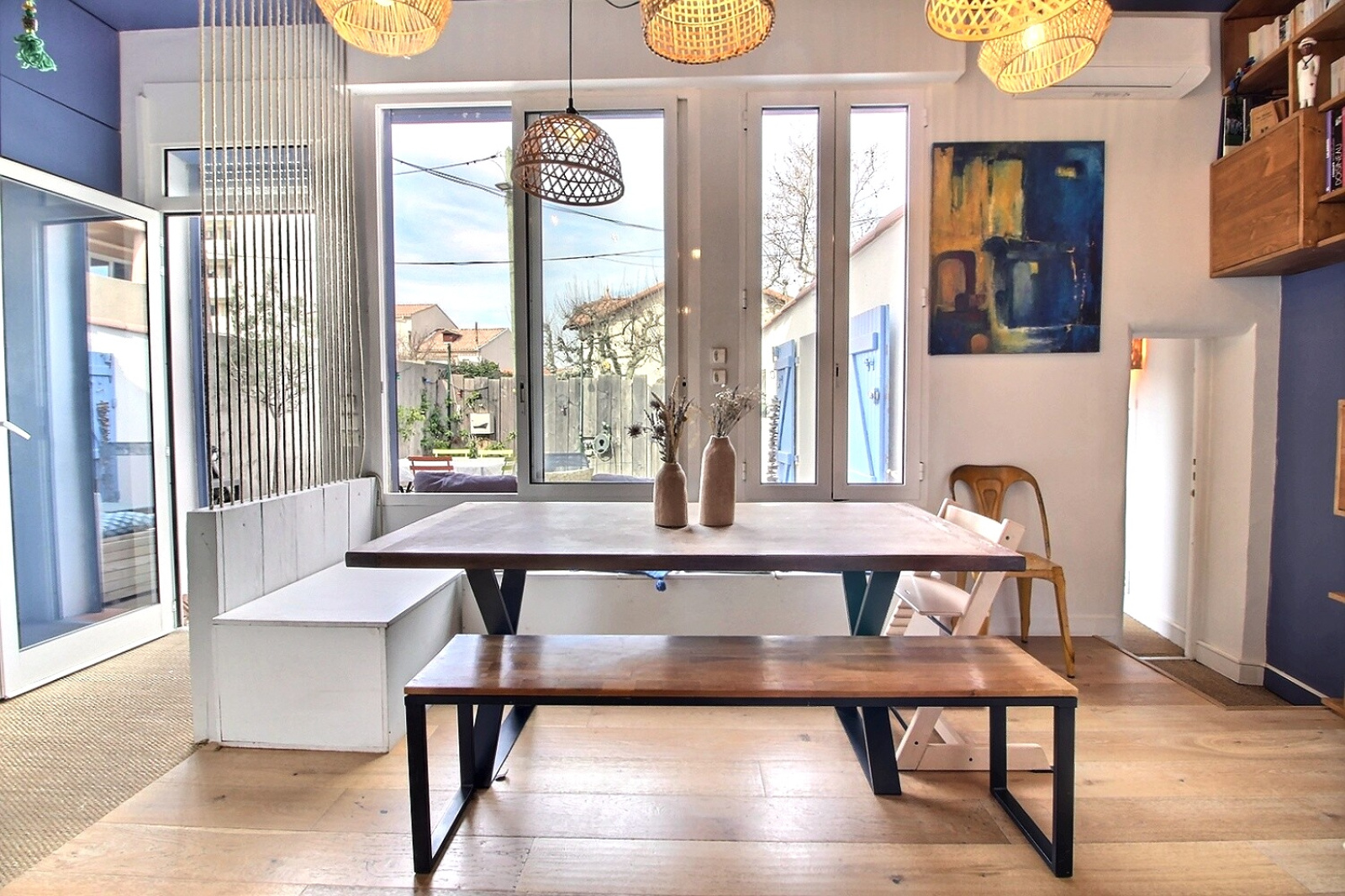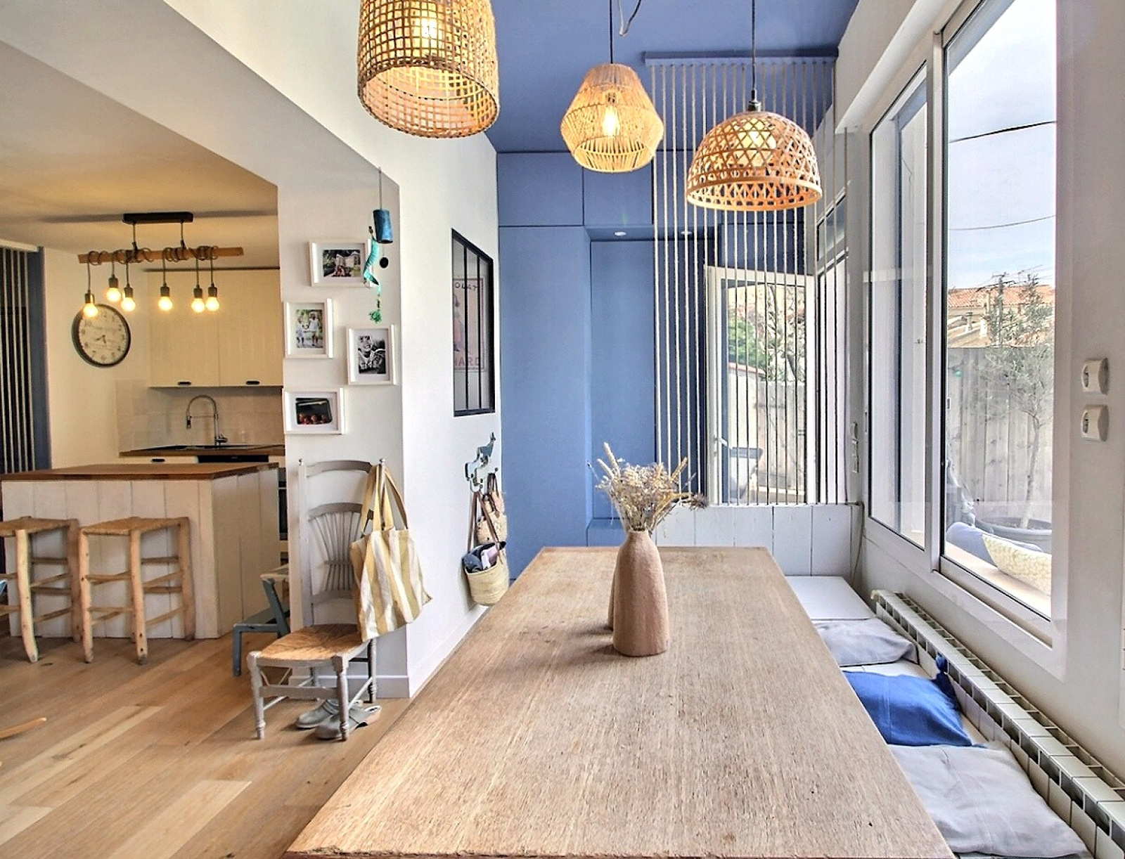 Vous avez toujours rêvé d'une jolie maison à deux pas de la mer ? MAM l'a dénichée! Située à 3 minutes de la mer et de la plage de la Bonne Brise dans le quartier de la Grotte Rolland, au bout d'une impasse pietonne parfaitement au calme, ravissante maison de plain pied sur une terrasse de 25m2, exposée sud / ouest. L'accès se fait par la terrasse qui méne directement aux pièces de vie d'un seul tenant : salle à manger, séjour, cuisine américaine. L'ambiance est un doux mélange de modernité et d'esprit plage. Au delà de l'atmosphère chaleureuse, Tout est pensé et pratique. Au rez de chaussée s'ajoutent une première chambre sur cour de 12 m2, une salle d'eau indépendante et une deuxième chambre de 11m2 avec accès sur la terrasse principale. A l'étage deux chambres de 15,5 et 16 m2 et une salle de bain. Toiture principale et isolation refaites en 2021. A voir sans tarder. Contact ML de Bryas 0603243478.