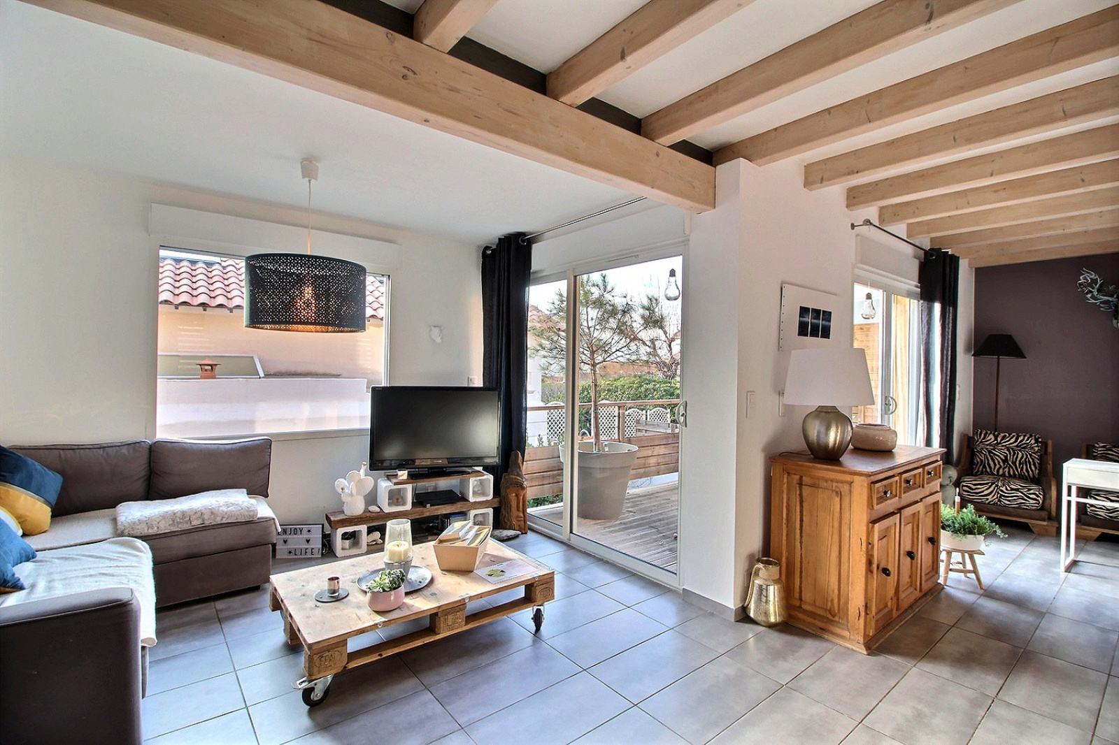 Exclusivité déalement placée ,cette jolie maison offre une belle pièce à vivre avec une grande cuisine ouverte, une espace salon ouvert sur une terrasse plein sud de 10 m2 et un coin bureau. A l'étage une chambre parentale de 13,5 m2 exposée sud ouest avec son espace salle de douche. Une salle de bain indépendante et deux chambres de 12,5 m2 et 10,5 m2. Deux chambres offrent une petite vue vers la mer. On accède par la terrasse et un escalier en bois à un petit jardin d'environ 50 m2 bien exposé. Un vaste sous-sol de 60m2 complète ce bien. Il sert de garage pour deux voitures, de buanderie et rangement mais il peut être facilement divisé en deux afin de créer une ou deux chambres avec accès sur le jardin Contact 0603243478