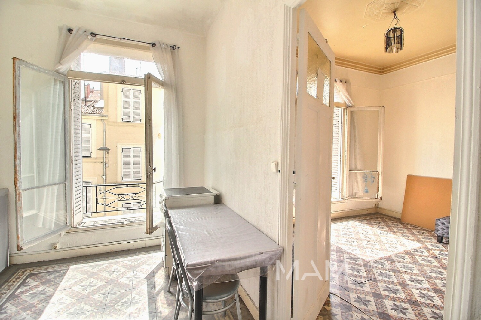 A rénover. Au 2ème étage d'un immeuble de 1931, cet appartement exposé Ouest se compse d'une entrée avec dégagement, une cuisine indépendante, un séjour ouvert en fond sur une chambre sans fenêtre, une salle de bains, des toilettes séparés, Cet appartement ensoleillé a gardé son charme avec ses sols en carreaux de ciment d'origine. Il est cependant à rénover complètement. Emplacement très central à proximité de la Place Castellane Métro tram sur place. Pour y vivre ou en investissement locatif. Pour plus d'informations ou pour organiser une visite, contacter Virginie MENUEY 06 86 46 76 38