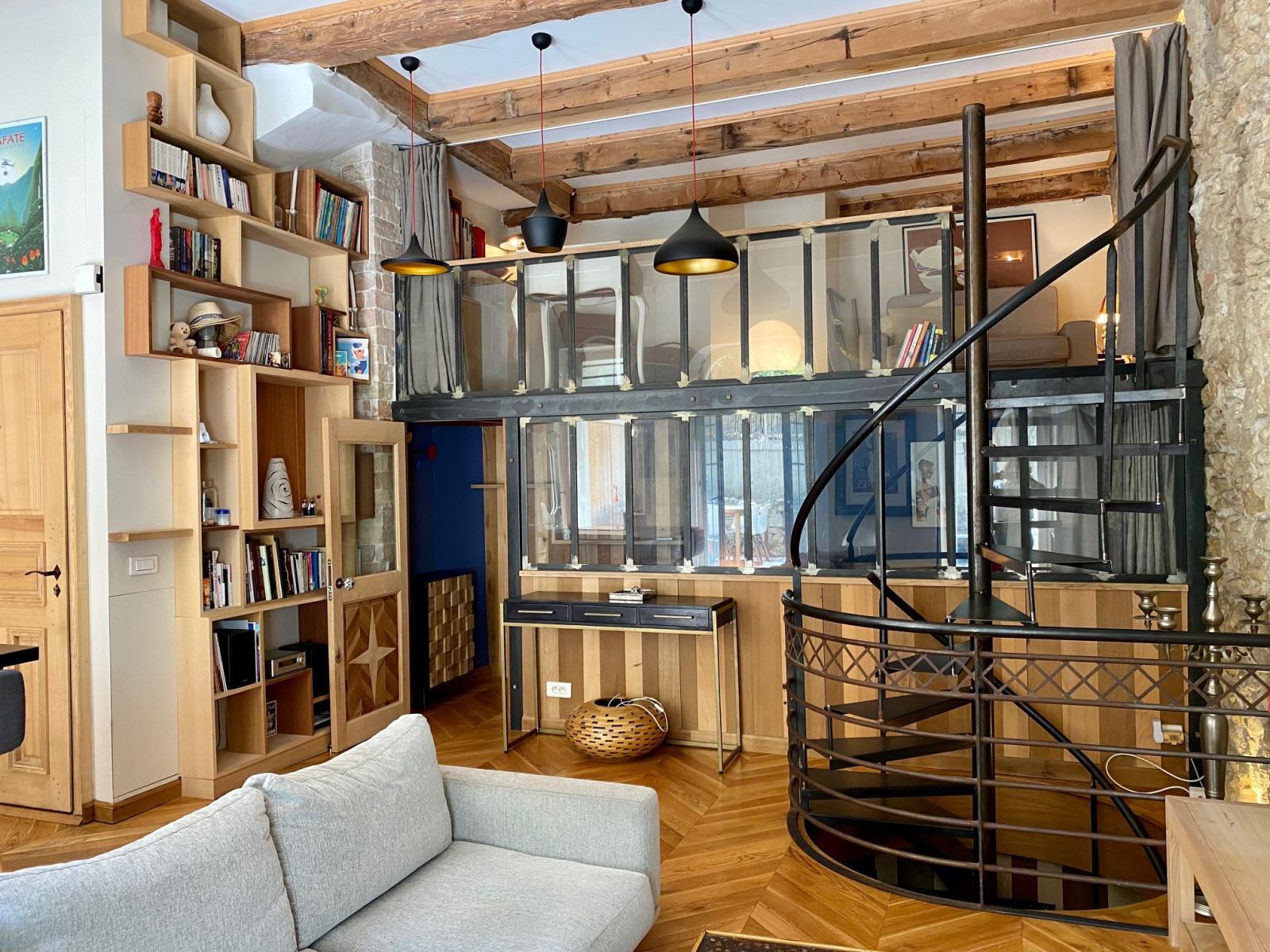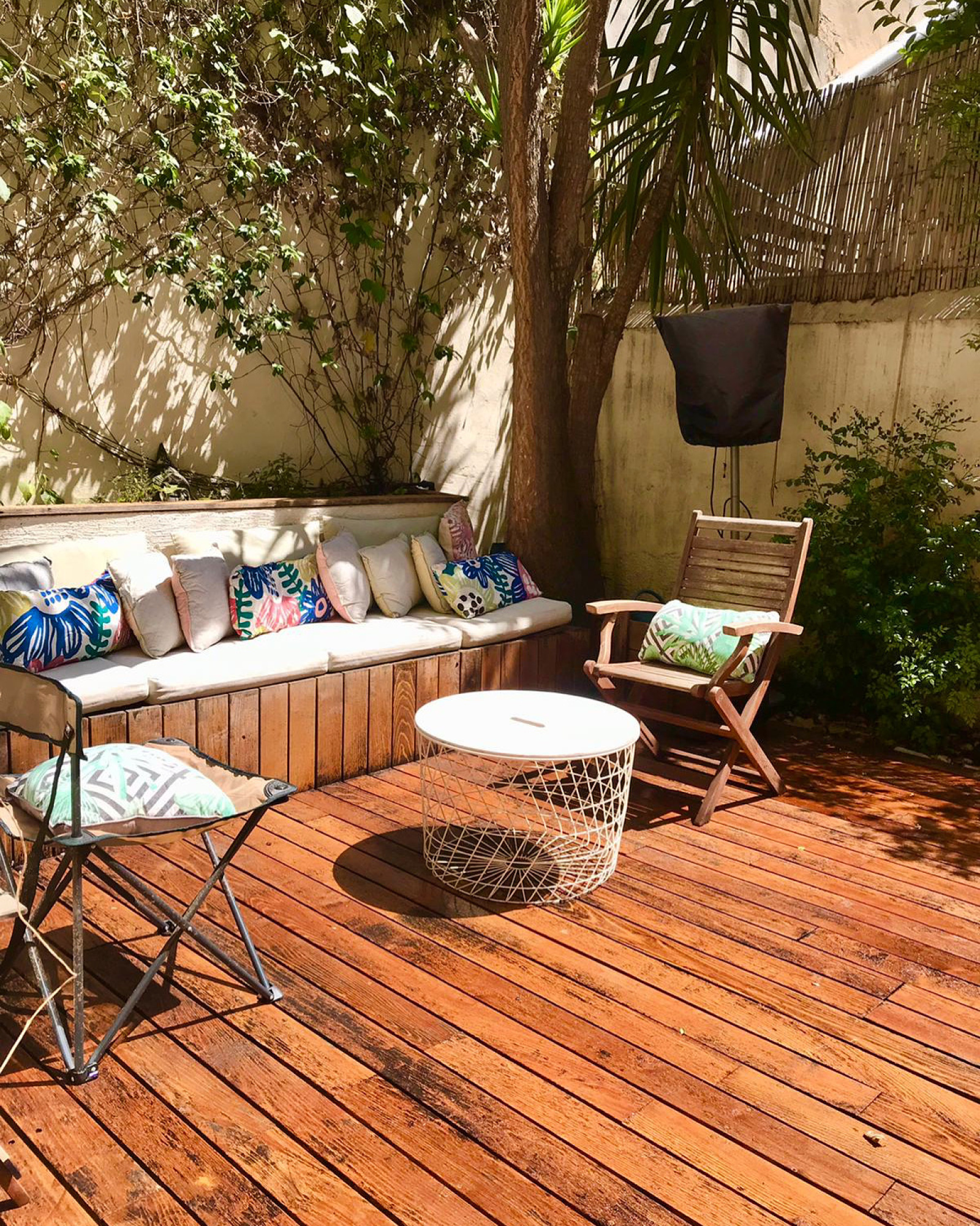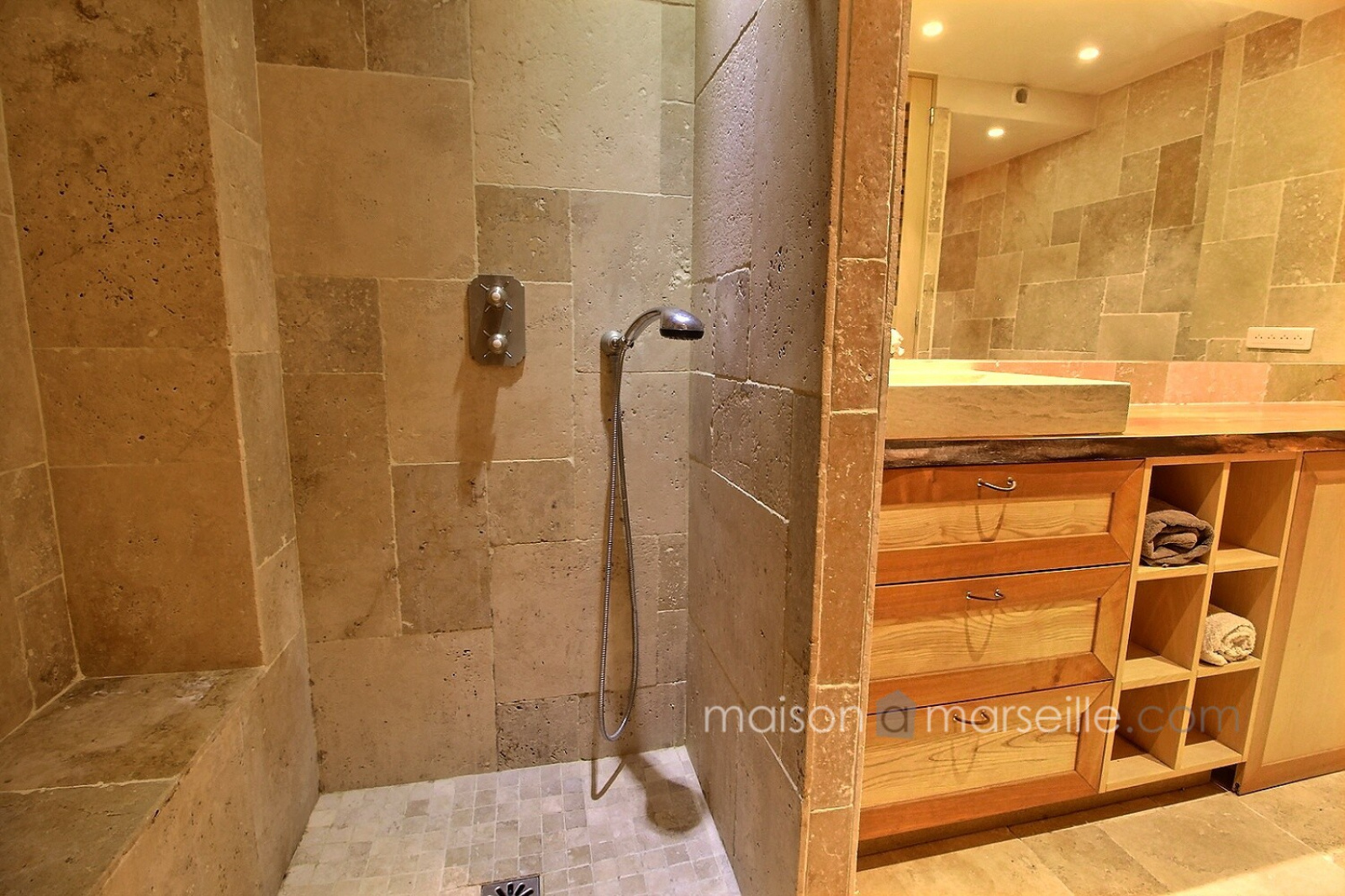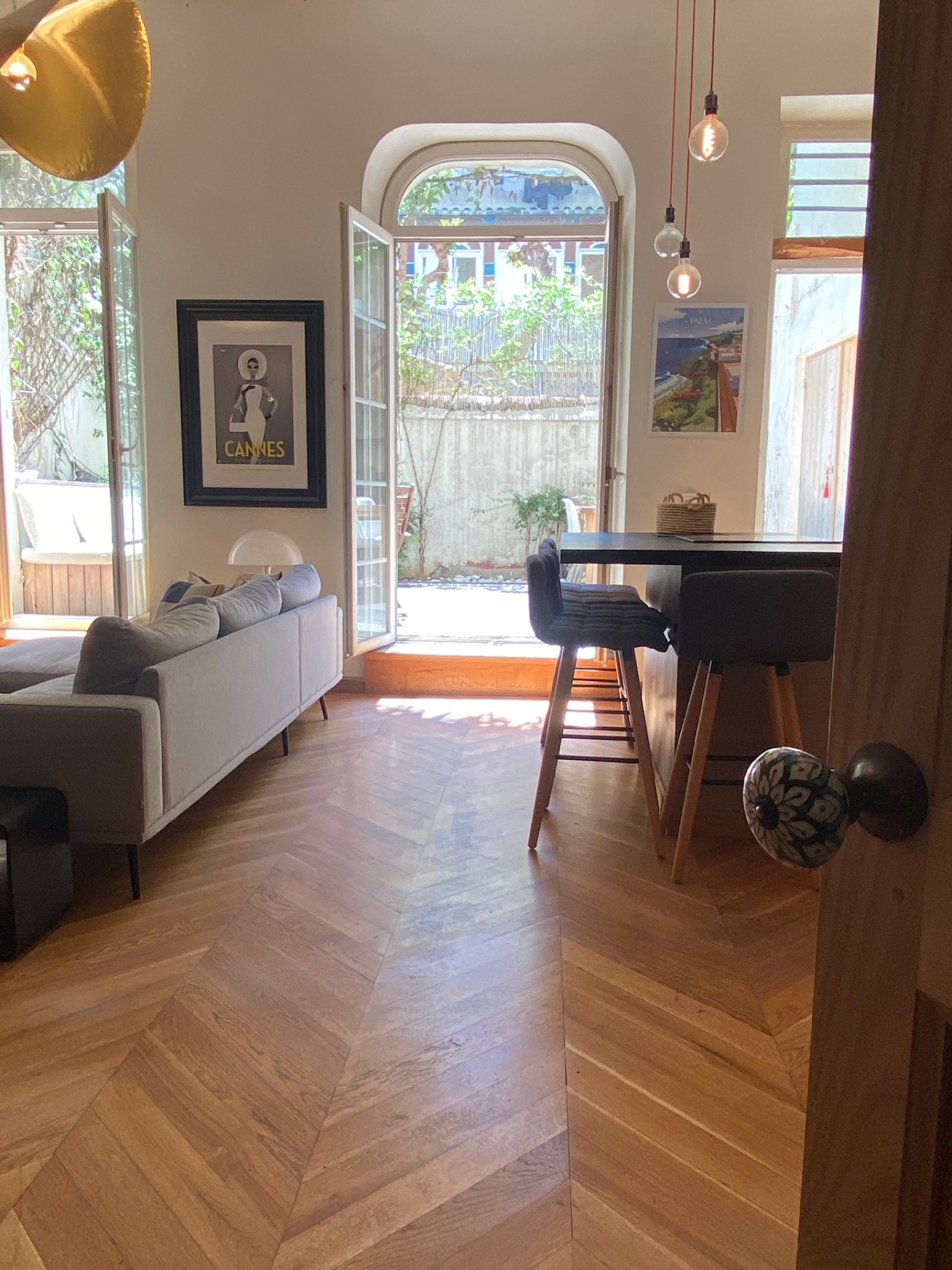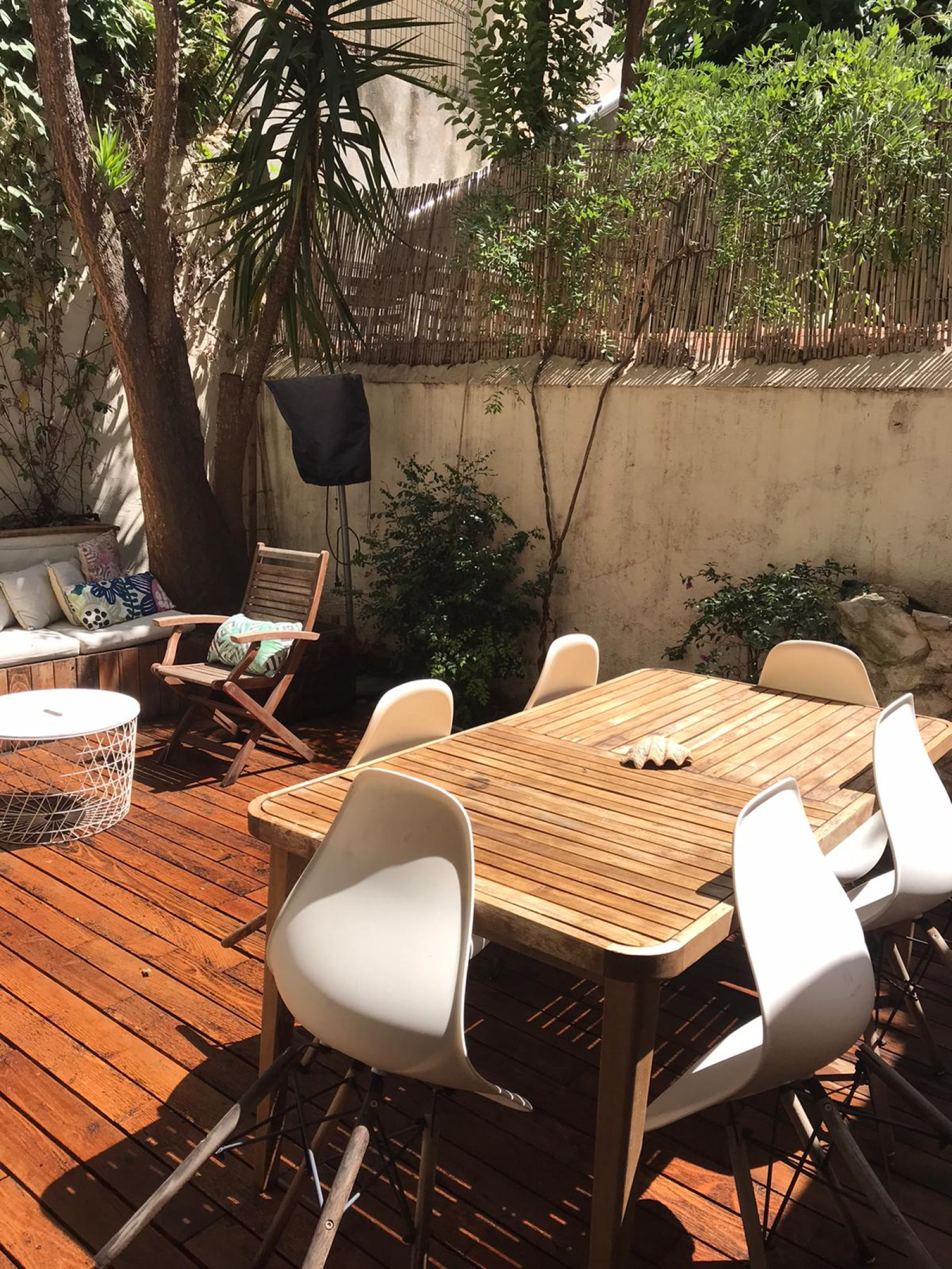 Un charme fou et des prestations et matériaux de très belle qualité pour cet appartement atypique niché au calme, proche du cours Julien et de la Plaine. Les matériaux et finitions sont remarquables. Le salon, doté d'un poêle et d'une belle bibliothèque en bois, donne par 3 porte fenêtres sur le jardin, plein de charme, qui prolonge naturellement l'espace et offre aussi une cuisine d'été, Un escalier en fer forgé accède à une pièce aujour'hui ouverte mais qui peut être vitrée fermée sur toute sa longueu et qui peut accueillir soit un bureau soit une chambre. Sous la mezzanine, communiquant de plain pied avec le salon, vous retrouvez également une chambre avec ses toilettes contigus cachés derrière une étagère porte . L'escalier principal discret descend vers un étage entièrement consacré au linge et au bien être: comme un boudoir, cet espace commence par un dressing sur mesure aux très belles portes de bois, puis l'on enchaine plus au fond vers la partie salle de bain et buanderie tout ausi raffinée. Idéal pour un couple ou un pied à terre au coeur de Marseille, proche du métro, des marchés, des restaurants et boutiques du Cours Julien et du quartier Chave et Camas.