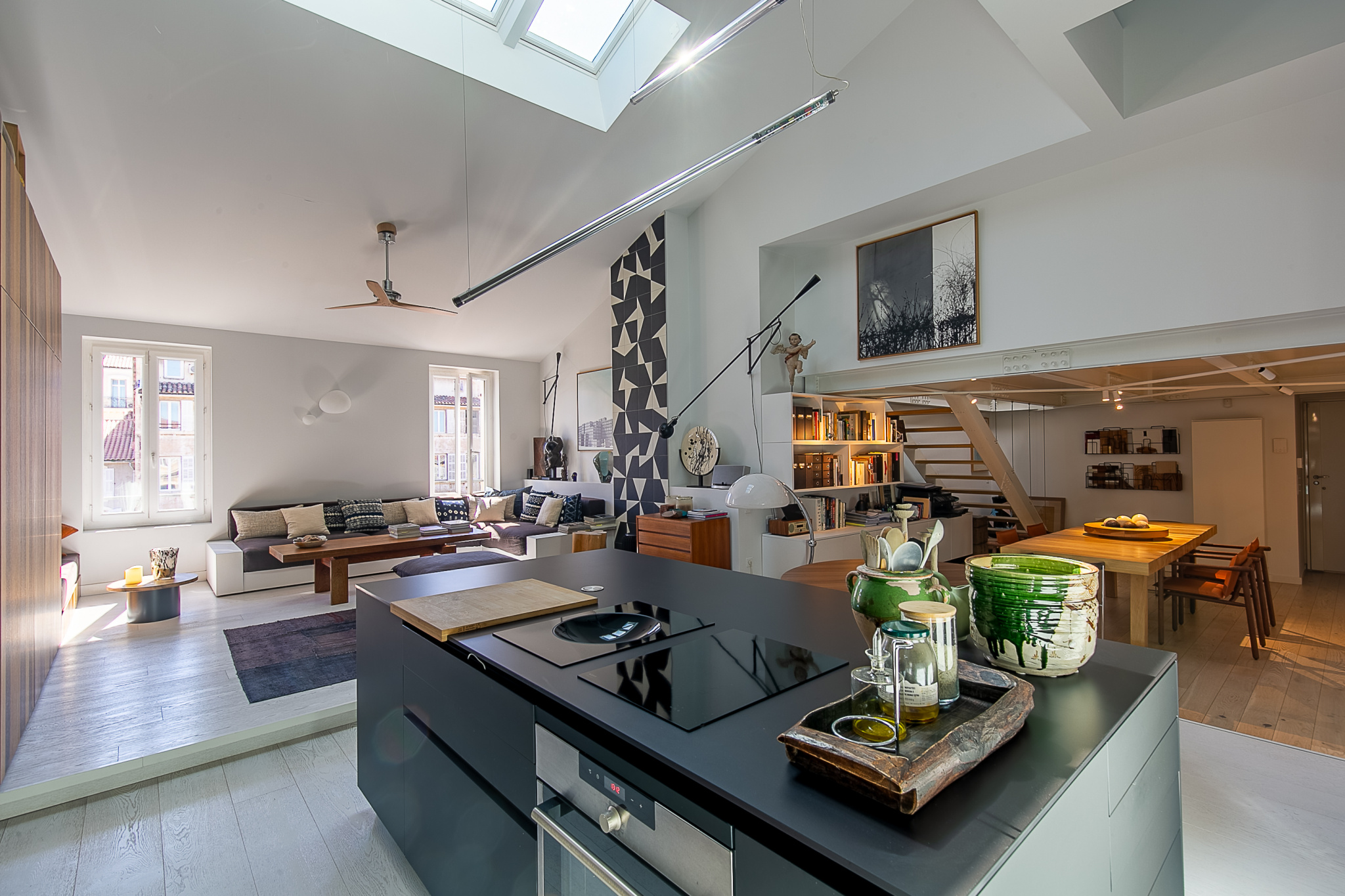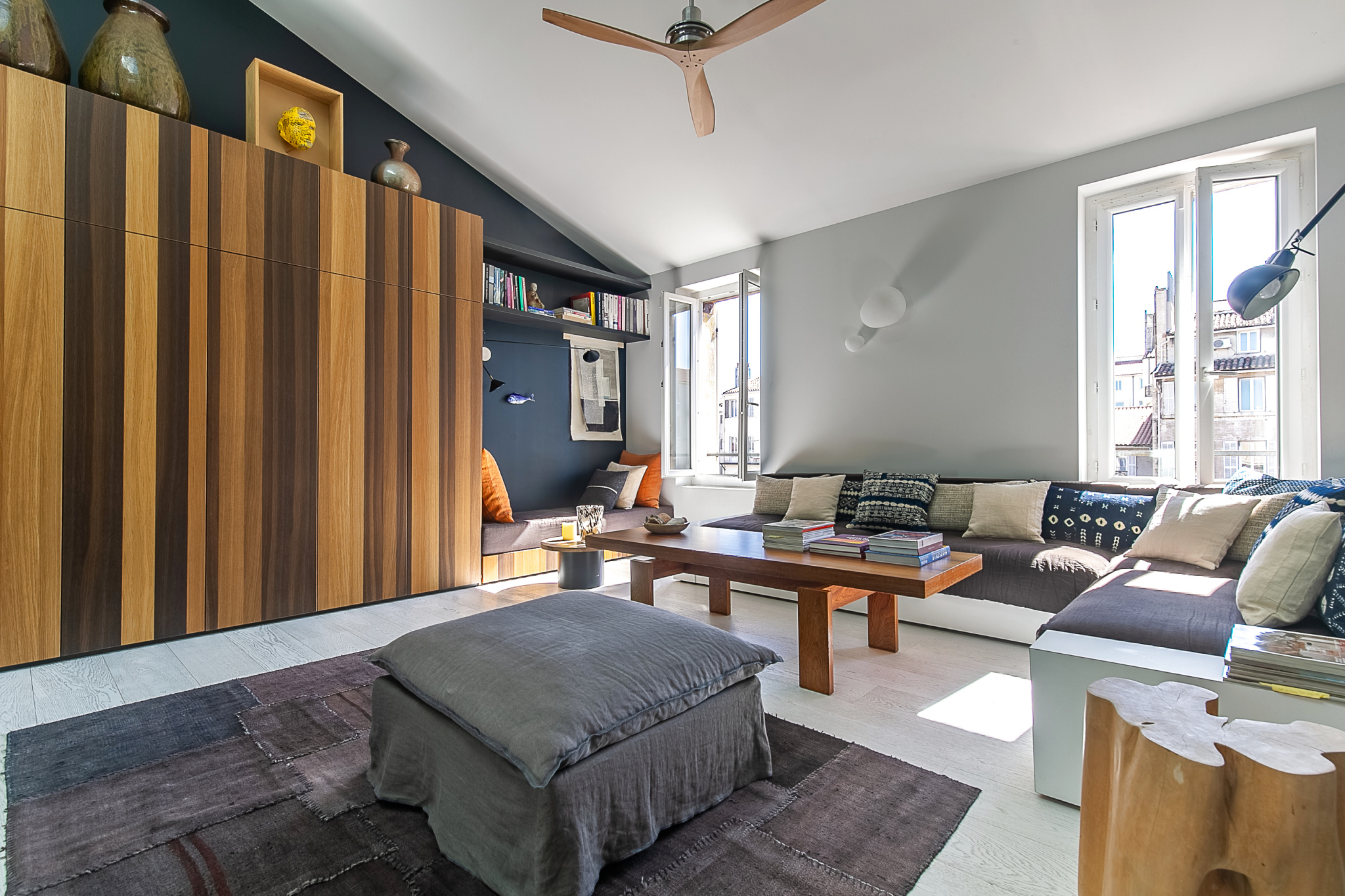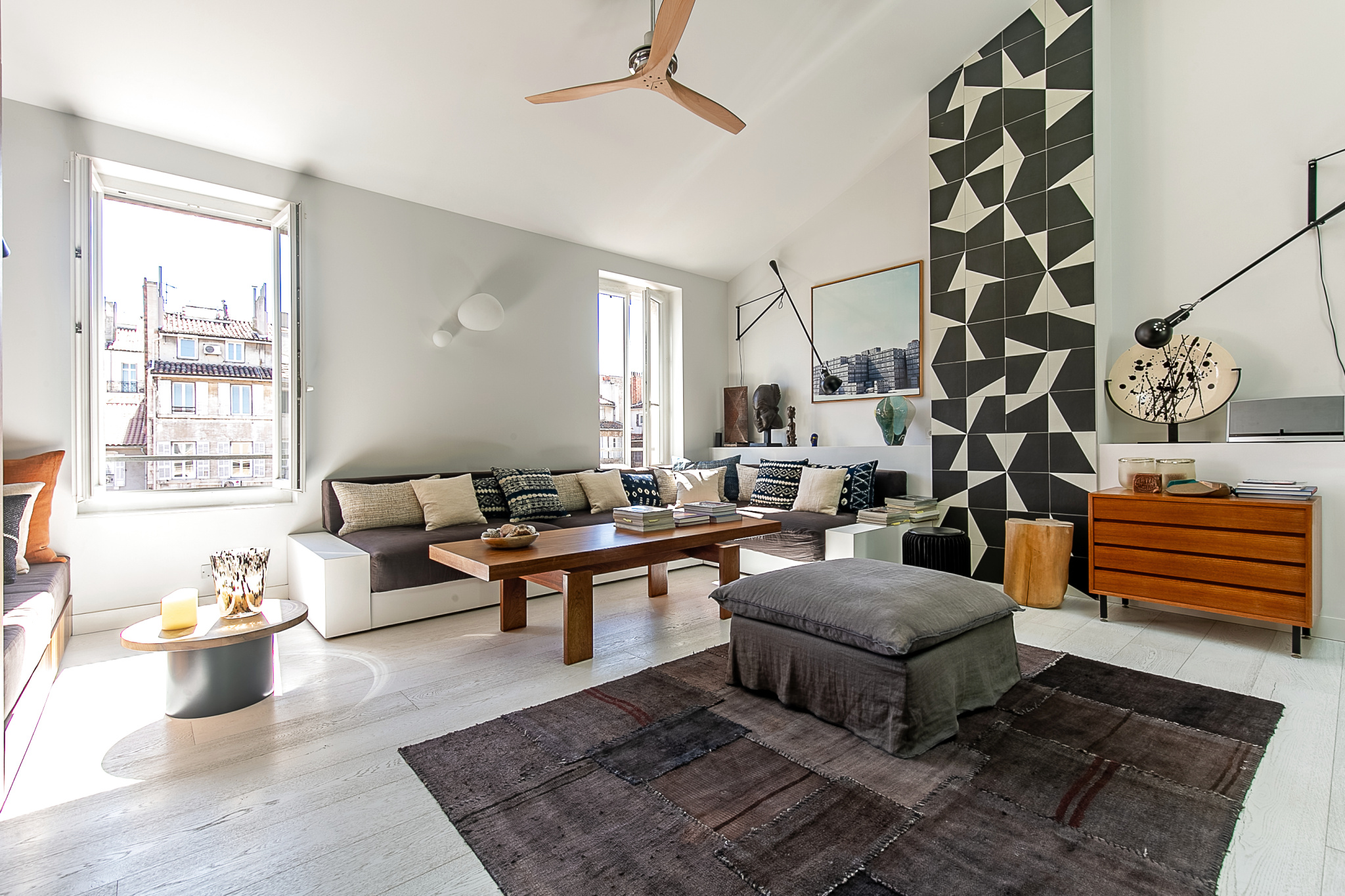 Au coeur de l'hyper centre bourgeois, sublime appartement de charme au dernier étage (ascenseur) d'un bel hôtel particulier XIXème à la façade classée côté Palais de Justice/Lulli. Un écrin citadin récemment créé par architecte, un travail d'orfèvre sur mesure de haute qualité. Superficie habitable: 105m² - loi Carrez: 100,54m². Lumineux - Plein sud - Pas de vis à vis - Calme absolu. Vue dégagée sur les toits de la ville et la Bonne Mère! L'espace de vie principal, un havre de paix ultra lumineux offre une magnifique réception de 65m². Volumes généreux, 5m de hauteur sous plafond ponctué d'ouvertures zénitales: salle à manger - cuisine équipée avec îlot - salon. 2 chambres baignées de lumière (13m² + 14m²) dont une en duplex. Vaste salle d'eau esprit spa. Buanderie. Nombreux rangements, menuiserie d'agencement de belle facture. Tous les équipements, tous les matériaux choisis sont nobles et mis en scêne avec simplicité. Diagnostics techniques excellents, aucune anomalie. DPE: B - GES: A. Environnement de qualité, situation idéale pour un quotidien facile à pied dans la ville. A 2 pas du Vieux-Port, de l'opéra; du Cours d'Estienne d'Orves et célèbres restaurants. Au coeur du quartier des affaires - Palais de justice - Banques - Métro. Petits commerces de bouches réputés, boutiques de luxe et créateurs. Boutiques déco - Galeris d'art - Musées - Brasseries et terrasses au pied de l'immeuble. Un cocon singulier pour y vivre, également pour y travailler. Le bien est doté d'une double affectation, destination habitation et destination professionnelle. Posssibilité location parking. Taxe foncière 2024: 1792 € - Charges mensuelles: 130 €