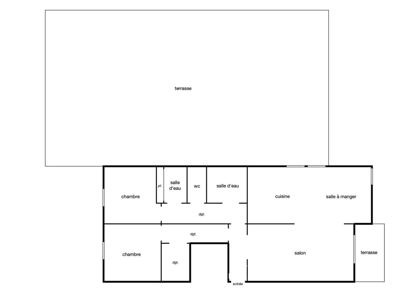 Il bénéficie d’une exceptionnelle terrasse de 67 m² orientée est-ouest, offrant une vue dégagée sur la ville et la mer.