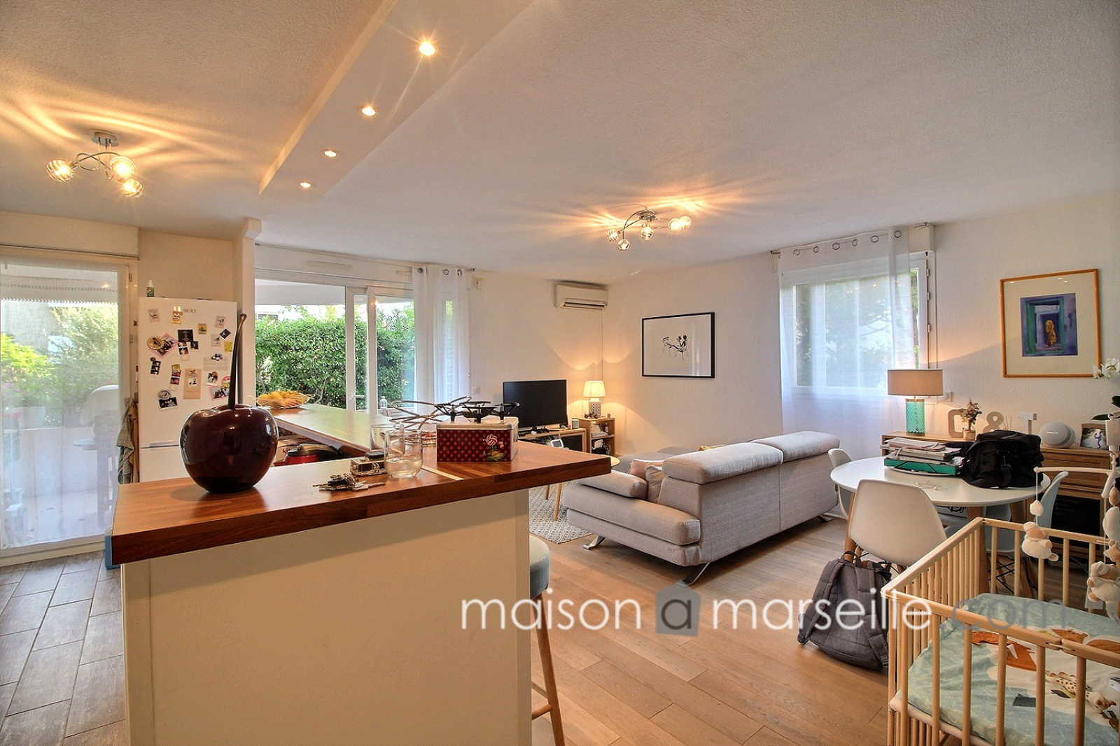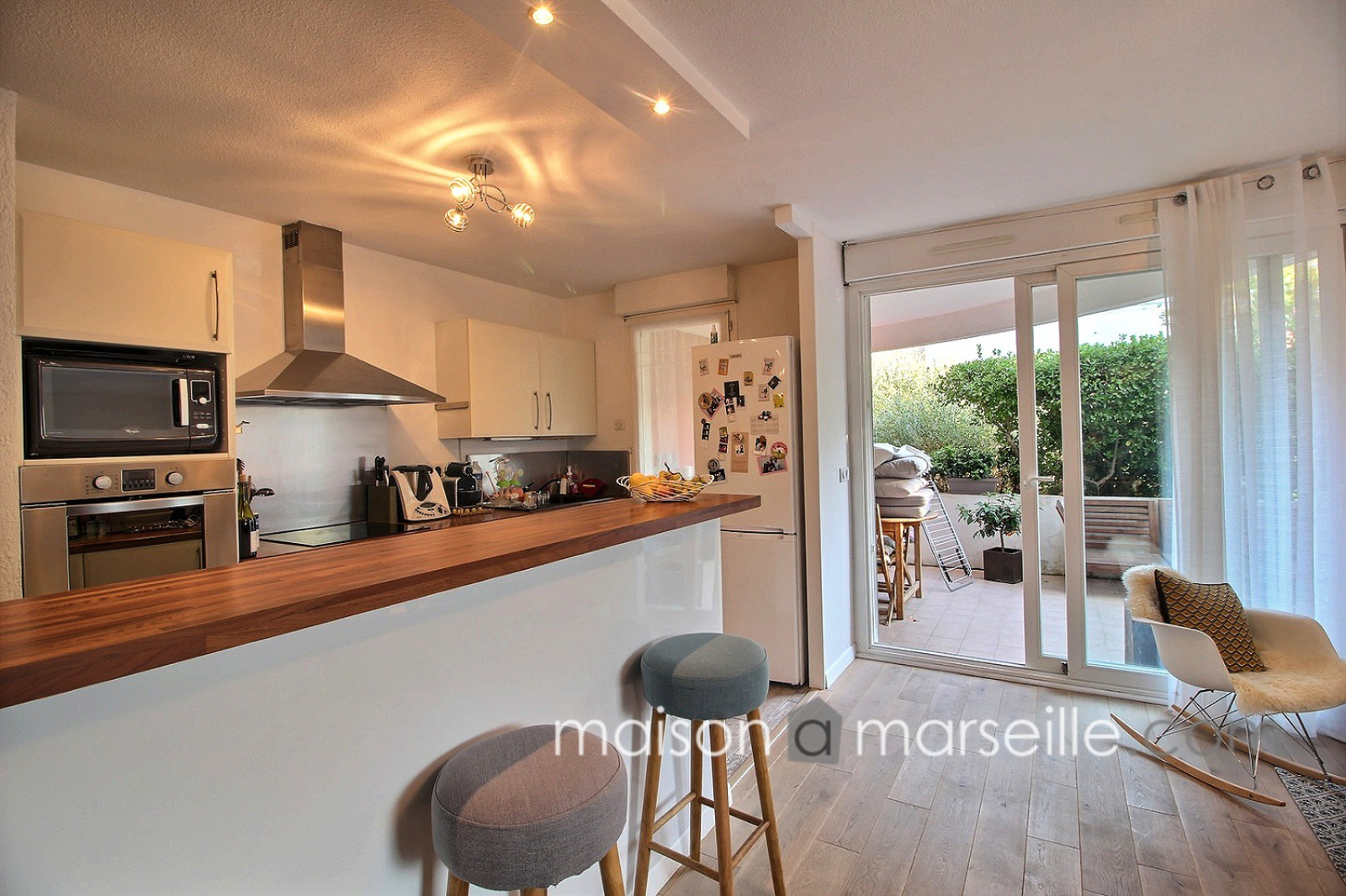 T3 joliment rénové en rez-de-jardin sans vis-à-vis et parfaitement au calme La pièce principale, son coin salle à manger et la cuisine équipée ouverte d'une surface de 36 m2 ouvre sur une grande terrasse de 19,5 m2 très agréable, exposée ouest et totalement à l'abri des regards. Un espace nuit composé de deux chambres et d'une salle de douche complète ce bien. L'appartement est entièrement parqueté en chêne massif et climatisé. Les stores sont automatisés et centralisés. La résidence est très bien entretenue et suivie. Box fermé au sous-sol. Contact ML de Bryas 0603243478