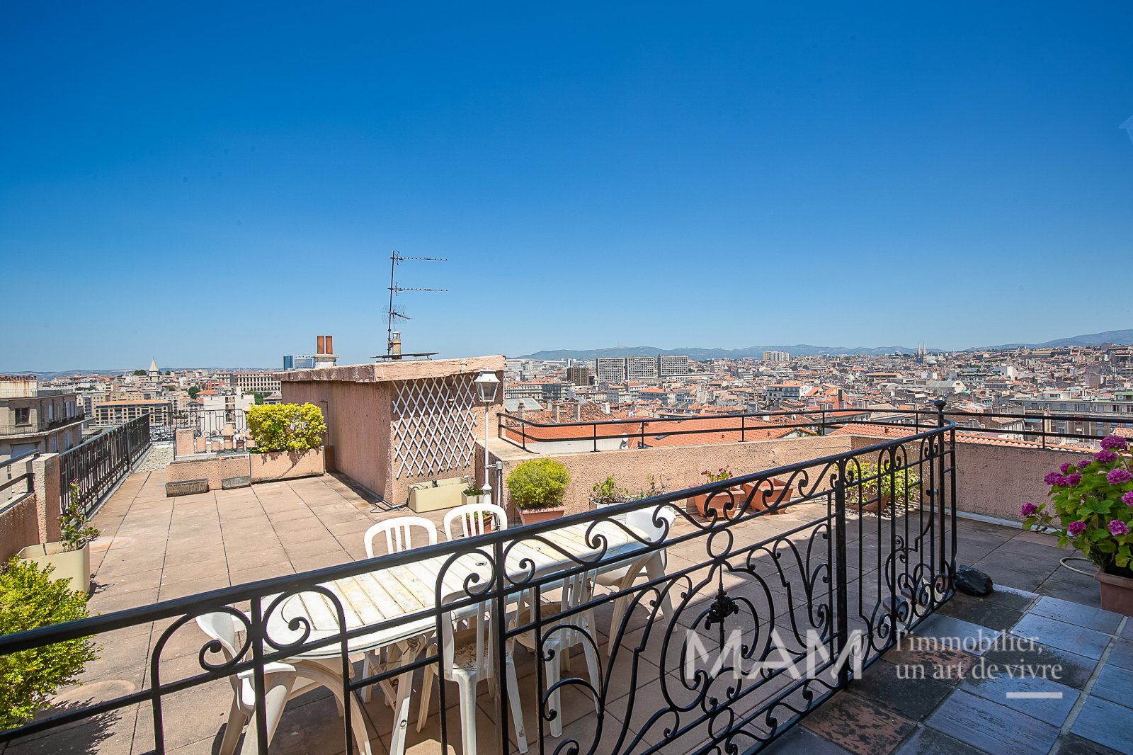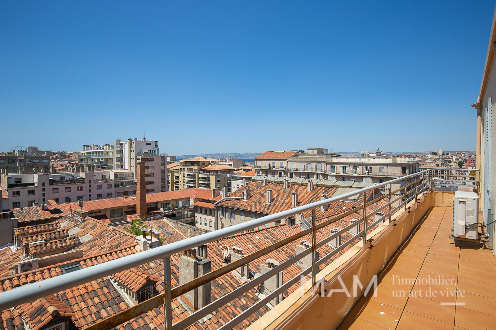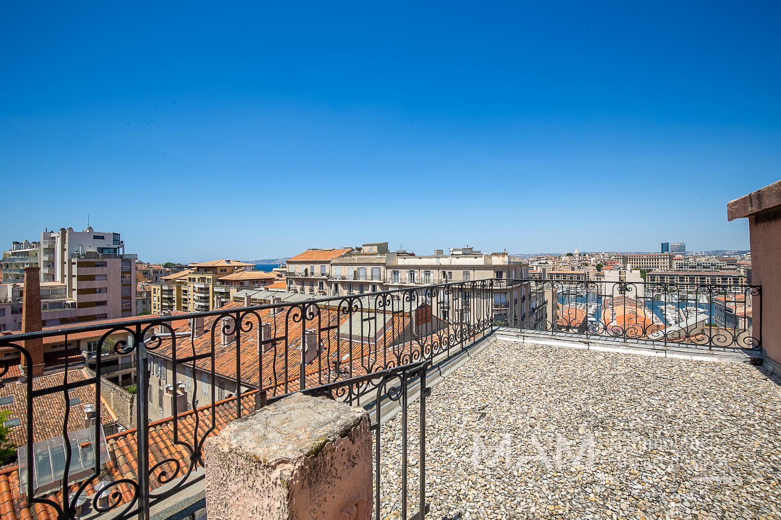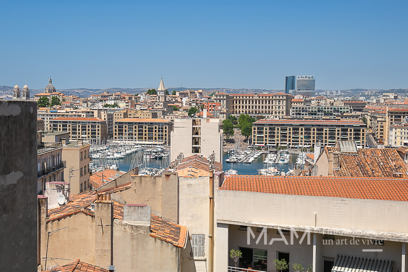 Découvrez cet appartement au 7ème et dernier étage d'un immeuble Art déco situé rue Grignan perché entre le vieux port et Saint-Victor.