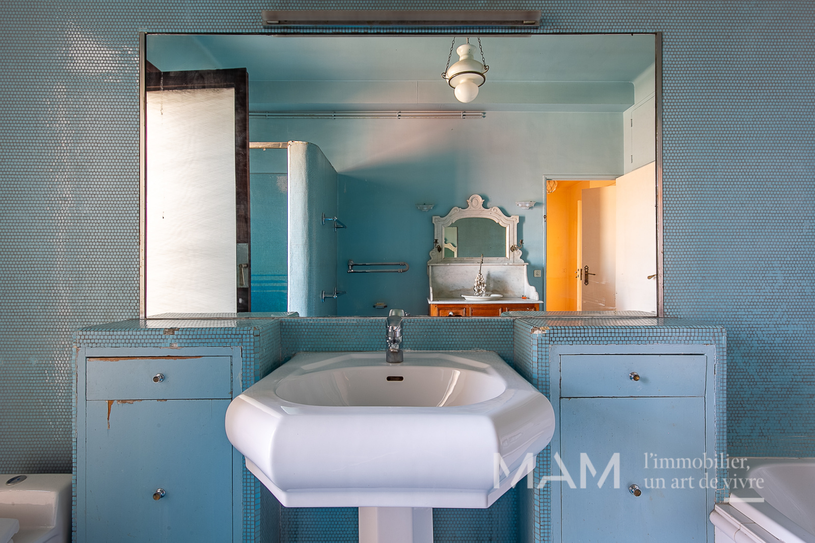 Un couloir plus intime dessert deux autres chambres de 12 m² chacune ainsi qu'une très grande salle de bain en mosaïque années 30 et une salle d'eau. Celle-ci donne sur une loggia de 7,60 m2 et sa vue !