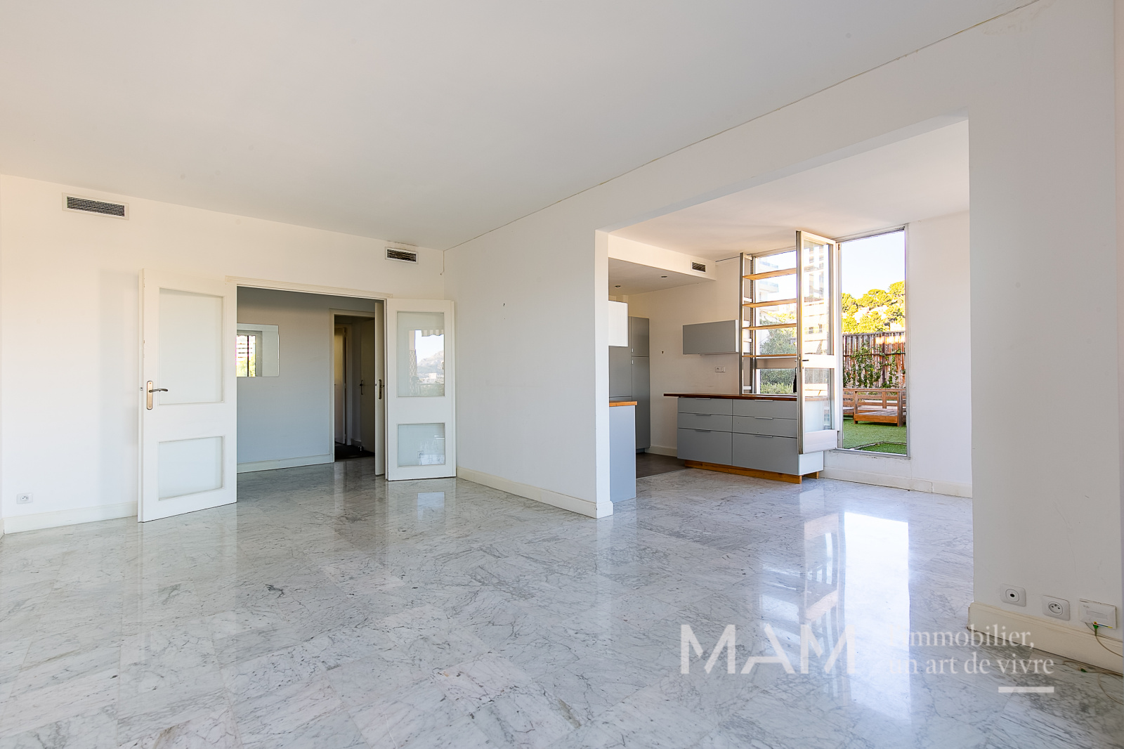 Découvrez ce superbe appartement T3/4 de 89 m² situé à la Cadenelle, offrant une magnifique terrasse de 67m² exposée est-ouest avec vue dégagée sur la ville et un aperçu mer. L'entrée distribue à droite un salon lumineux donnant sur un balcon de 7,5 m2 et sa jolie vue sur la mer, une cuisine ouverte sur la salle à manger, le tout donnant de plain-pied sur la terrasse idéale pour profiter des beaux jours et offrant une vue splendide sur la ville. L'espace nuit comprend une chambre avec dressing, toilettes séparées, une salle de bain, ainsi qu'une seconde chambre avec rangements. Situé au 8e étage, ce bien dispose également d'un parking et d'une cave. Un cadre de vie exceptionnel à découvrir ! Contact ml de Bryas 0603243478
