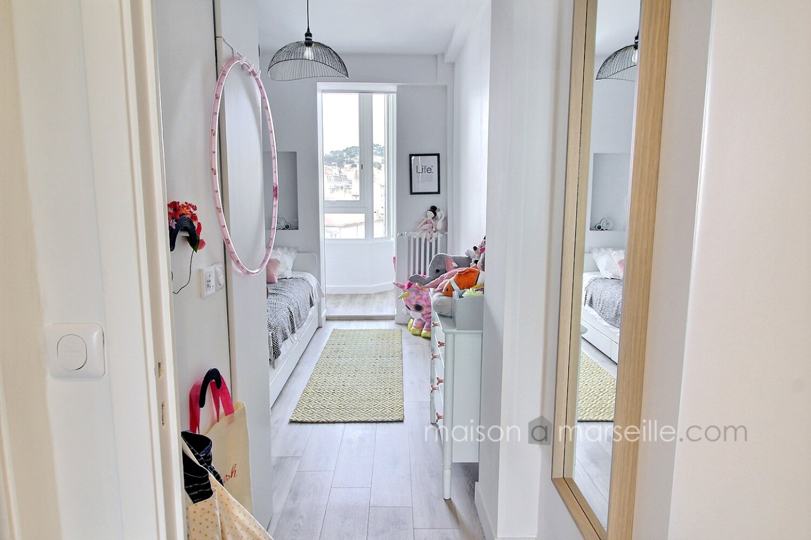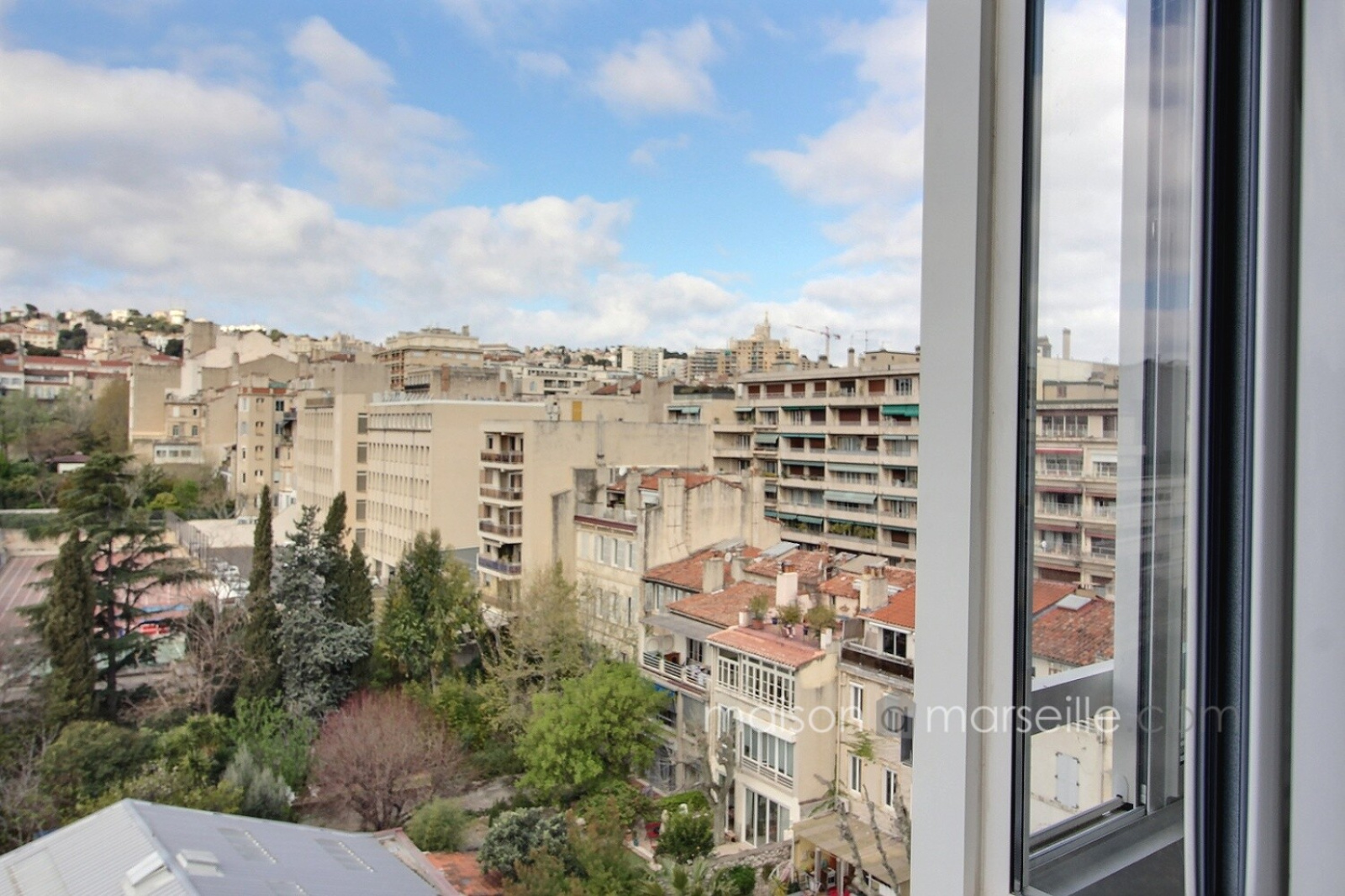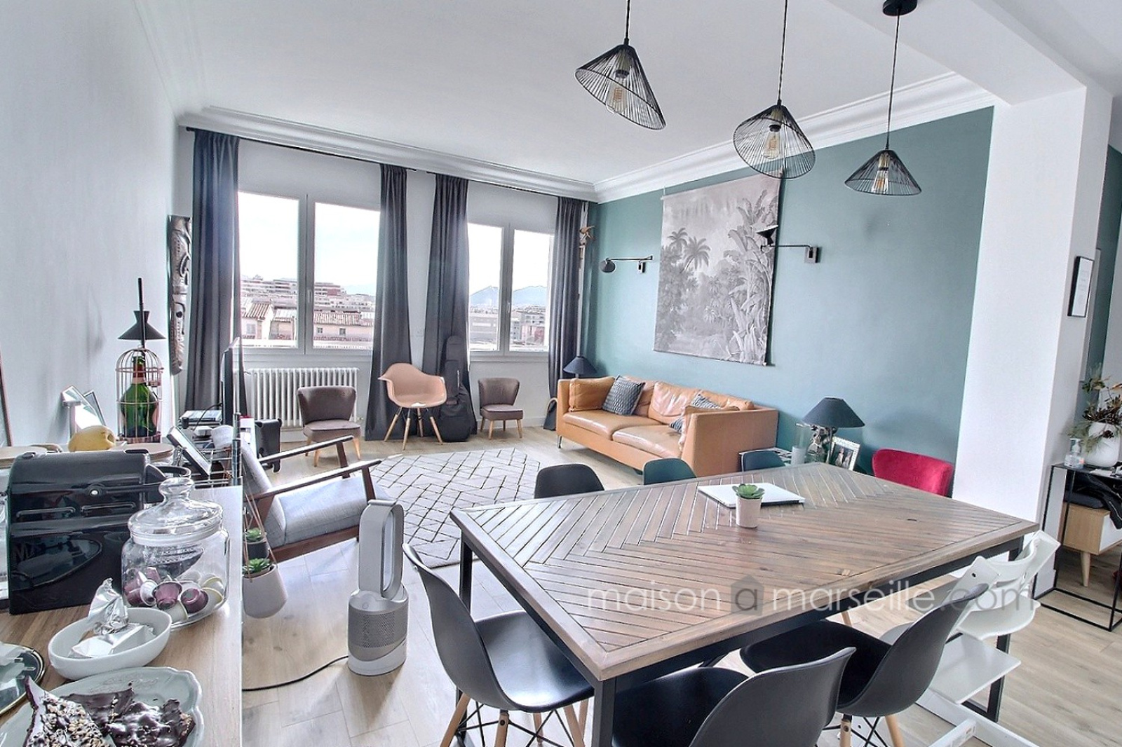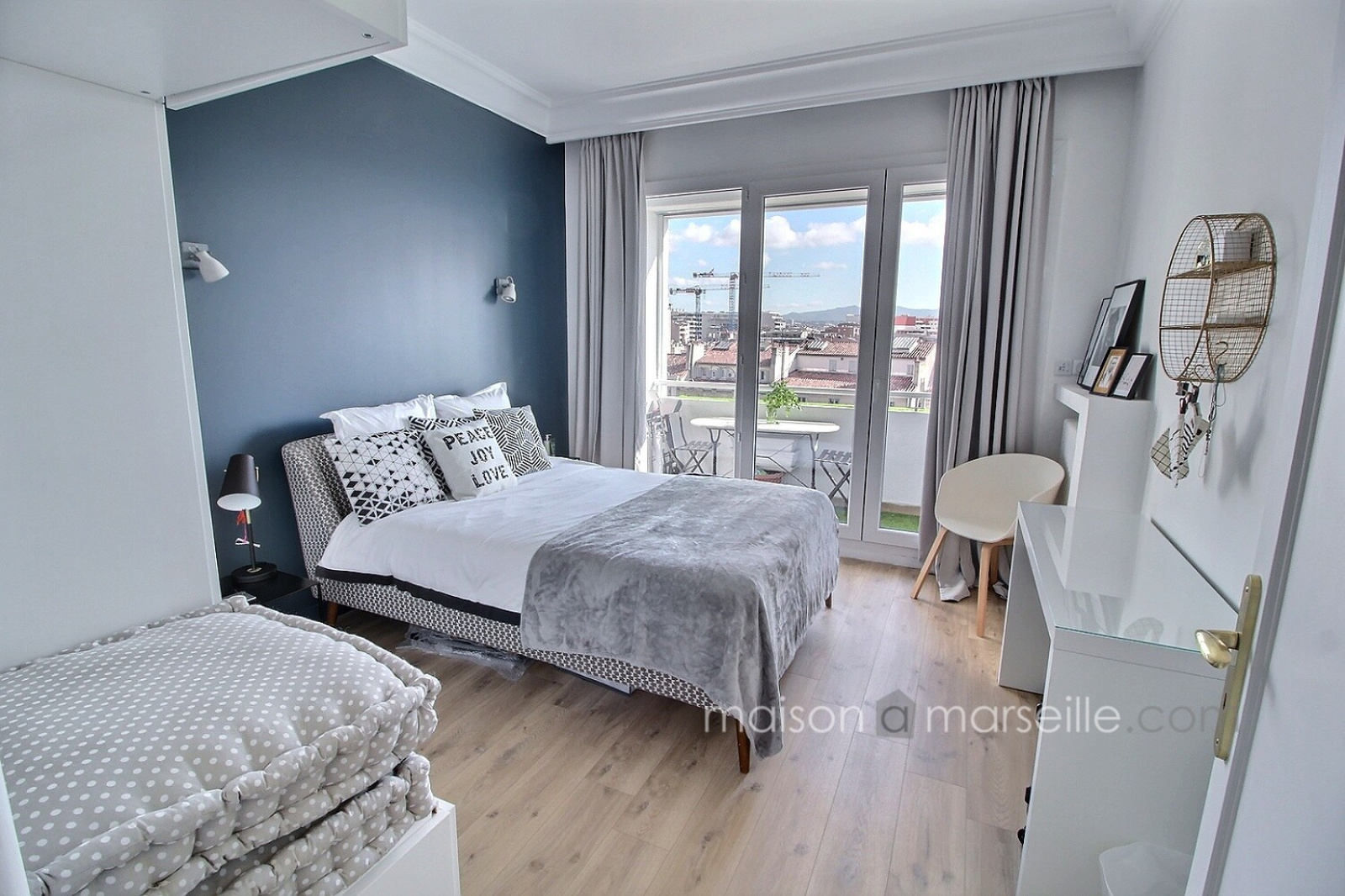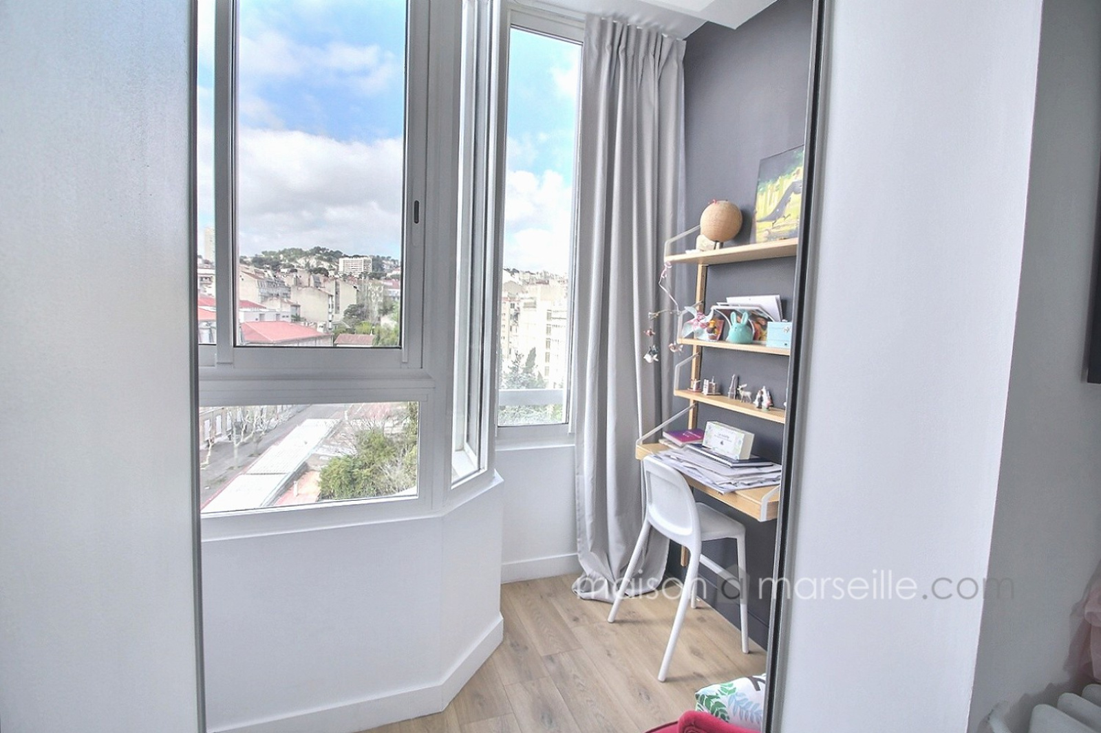 Vous recherchez un appartement central, lumineux et complètement refait à neuf ? Ce petit bijou au 7ème étage est fait pour vous. Ce T4/T5 aux prestations soignées offre de nombreux atoûts : - En tout premier point, son emplacement: à deux pas des écoles publiques (Mermoz) et privées (Provence, Cluny), commerces, restaurants, marché, cinéma, métro, lignes de bus et aussi acces direct autoroute. Vous serez également à 10 mn des plages, 17 mn de la gare St Charles et 25 mn de l'aéroport de Marignane. - Sa rénovation de qualité et au goût du jour vous apportera sérénité et bien-être. - Lumière et vue dégagée pour cet appartement traversant. - Une distribution optimisée avec un espace nuit séparé constitué de 3 chambres avec chacune sa particularité. La suite parentale dotée d'un espace de travail, d'une salle de bain indépendante et de nombreux rangements. Une ravissante chambre d'enfant et son bow window avec un coin bureau et en prime vue sur Notre Dame de la Garde. Une chambre d'amis avec une large porte fenêtre donnant directement sur le balcon. Coté espace de vie, le salon et la salle à manger ouverts sur une cuisine américaine entièrement équipée vous permettront de recevoir facilement famille et amis. - Et enfin le Must Have du moment, un espace de télétravail complètement indépendant. Cette chambre de service refaite à neuf donne sur la terrasse commune de l'immeuble avec acces privatif. Un vrai extérieur que vous pourrez occuper selon vos envies. Mais vous pouvez aussi choisir d'y loger une jeune fille au pair ou votre enfant étudiant. Cave, gardien et parking possible en location à proximité immédiate. Climatisation dans toutes les pièces. Cette adresse est une valeur sûre, Alors, que vous veniez de Marseille ou d'ailleurs, ne tardez pas, osez changer. Pour plus de renseignements ou pour organiser une visite contactez Valérie Euverte au 06 15 17 55 50. R.S.A.C 789884954