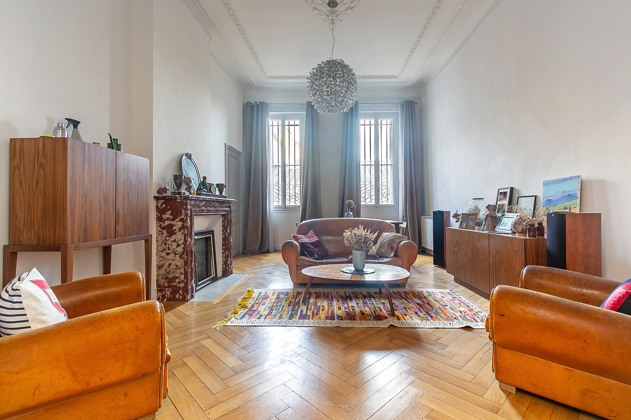 Elégant et Chaleureux appartement de Charme. T5 Bourgeois rénové. Quartier des Antiquaires/Castellane 13006. Une pépite citadine de caractère nichée au coeur du paisible et dynamique "Quartier des Antiquaires" au sein d'un petit immeuble bourgeois de trois étages classé remarquable; parfaitement entretenu édifié par la famille Noilly Prat. Hyper central et au calme absolu, ce refuge familial et de réception a récemment bénéficié d'une rénovation de qualité conjuguant à merveille le caractère et le cachet de l'ancien avec la praticité et l'esthétisme d'aujourd'hui. Un juste équilibre entre préservation du patrimoine et adaptation au mode de vie contemporain. Excellent état - Climatisation - Double vitrage... Charme d'antan préservé. Volumes généreux, dimensions chaleureuses indéniables... Grande hauteur sous plafond - Moulures - Superbe parquet chevron, tomettes - Magnifiques cheminées d'époque... Superficie au sol: 198 M². Superficie loi Carrez: 188,77M². Seul à l'étage, traversant. Vaste galerie d'entrée. Deux confortables espaces de vie de réception en enfilade totalisant 53M². Trois chambres (21M² + 24M² + 24M²) dont une dotée d'une salle d'eau au design contemporain. Dressing. Une salle de bains + douche au goût du jour. Cuisine indépendante équipée (14M²) contemporaine et fonctionnelle. Une chambre se service (9M²) jouxte l'appartement. Une cave. Possibilité d'achat d'un garage 2 véhicules en sus du prix. Idéal pour familles citadines, emplacement exceptionnel pour un quotidien facile et pratique pour petits et grands; à 2 pas à pied de toutes les infrastructures urbaines. Etablissements scolaires - Bus. Métro. Tram Castellane. Commerces de qualité - Brasseries, restaurants - Cinémas... Destination professionnelle possible. MDT: 2199. DPE/GES: D. Sylvie LUSINCHI: 06 64 97 73 23