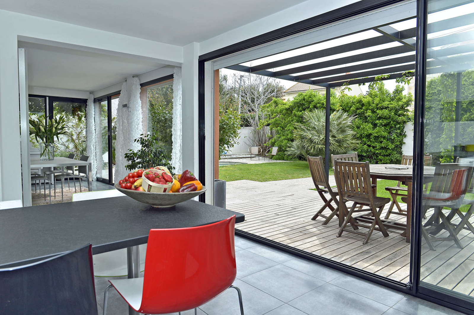 Comme une maison, bel appartement au coeur de la pointe rouge. Un grand séjour ensoleillé donne sur le jardin arboré et la piscine. La salle-à-manger et la cuisine baignées de soleil sont également ouvertes sur le jardin et ont accès à une terrasse ombragée de 30m2. Côté nuit une chambre parentale avec sa salle-de-douche et de nombreux rangements. Les deux autres chambres à l'est ont accès à une seconde terrasse et partagent une salle-de-bain. Une quatrième pièce pouvant servir de bureau ou de chambre d'appoint est équipée également d'une salle d'eau. Buanderie et garage double directement attenant complètent ce bien. Proximité immédiate plage, commerces, écoles et bus. Alarme. Climatisation réversible. Cet appartement en excellent état se situe dans une petite copropriété très calme et sans charges. Contact Ml de Bryas 0603243478