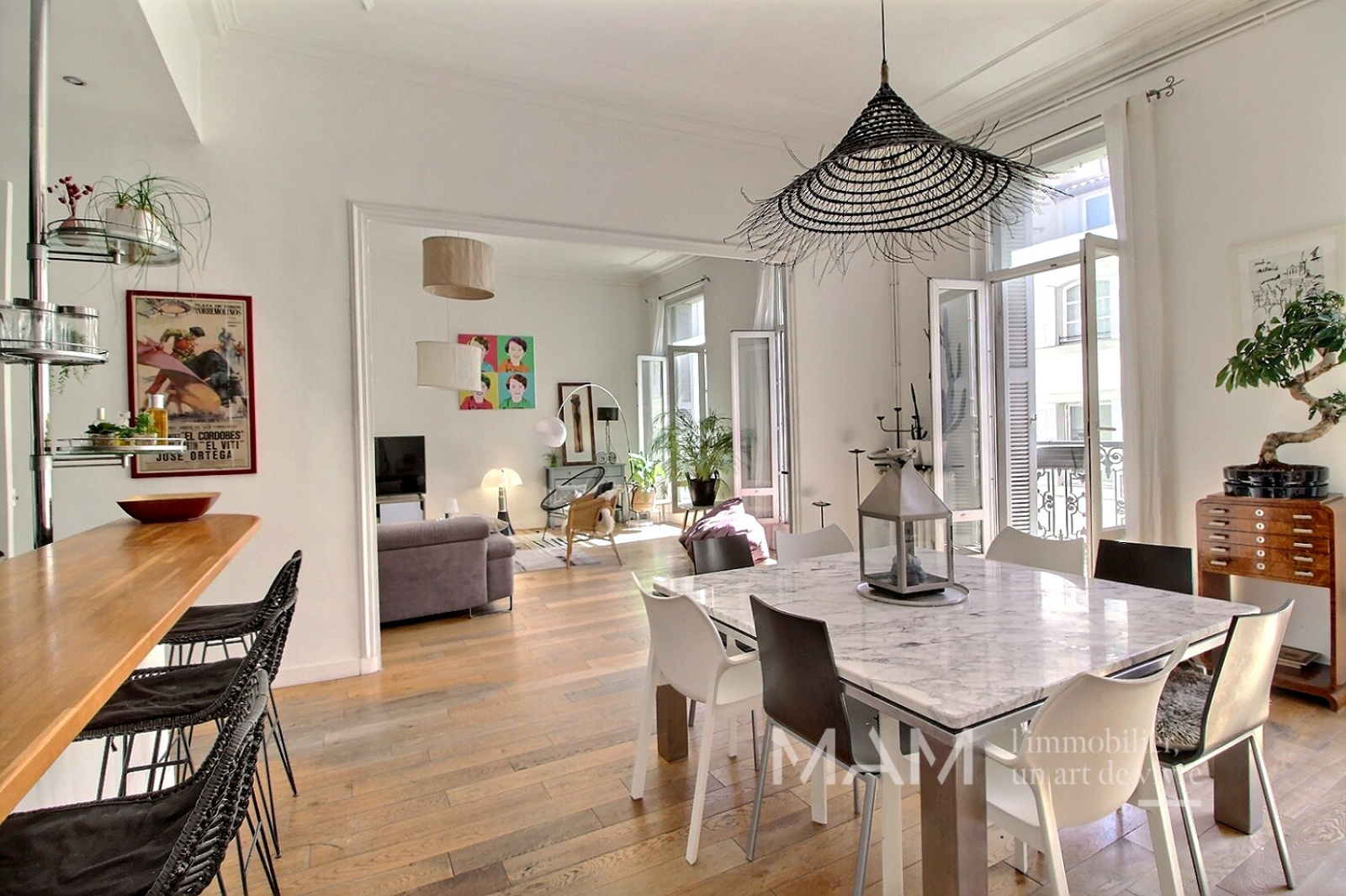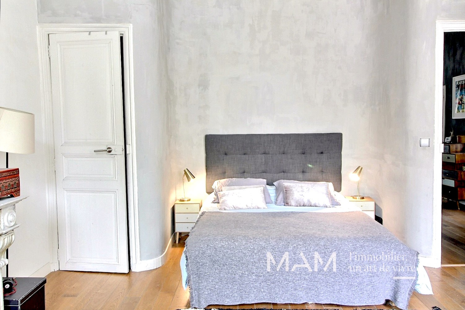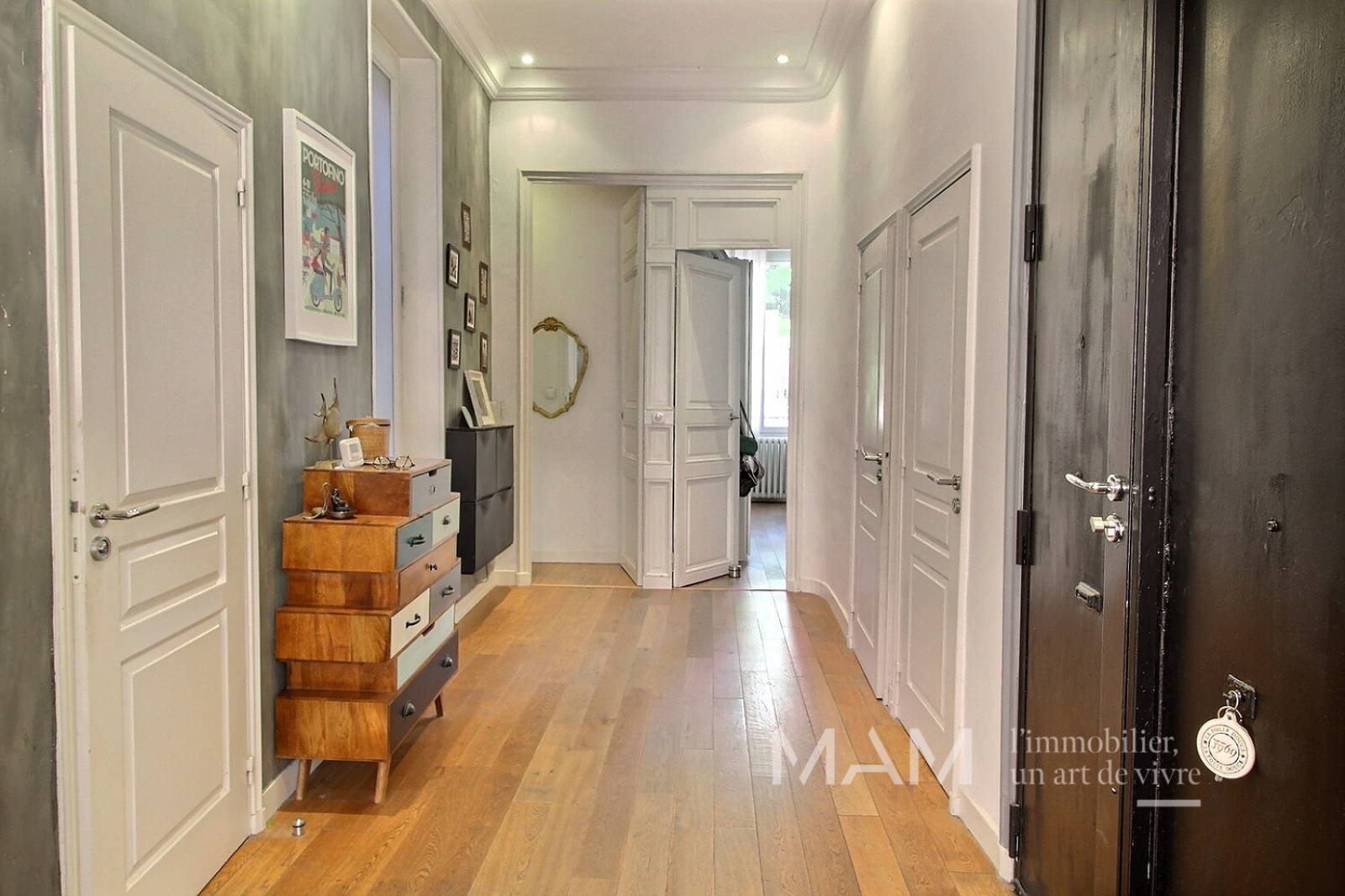 Seul au 2ème étage d'un immeuble remarquable début XXème en pierre de taille, ravalé en 2020. Une beau hall d'entrée nous emmène côté Ouest dans une grande double réception entièrement parquetée, très lumineuse avec ses quatre portes fenêtres. Une cuisine contemporaine équipée prolonge ce salon salle à manger bourgeois de 3M60 de hauteur sous plafonds. Côté Est, la seconde partie de l'appartement se compose de trois chambres dont une parentale de plus de 20 m2 et deux avec mezzanines.Salle de bain avec baignoire et douche, toilettes séparés, coin lingerie, dressing. Dans tout l'appartement, parquets de chêne, cheminées, hauteurs sous plafonds, moulures et corniches ont été préservés pour allier art de vivre contemporain et volulmes haussmanniens.Entièrement climatisé dans toutes les pièces. Pour plus d'informations, contactez Virginie Menuey au 0686467638