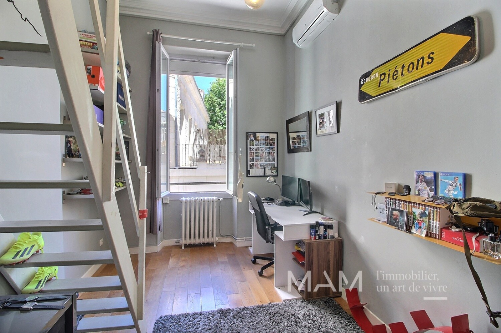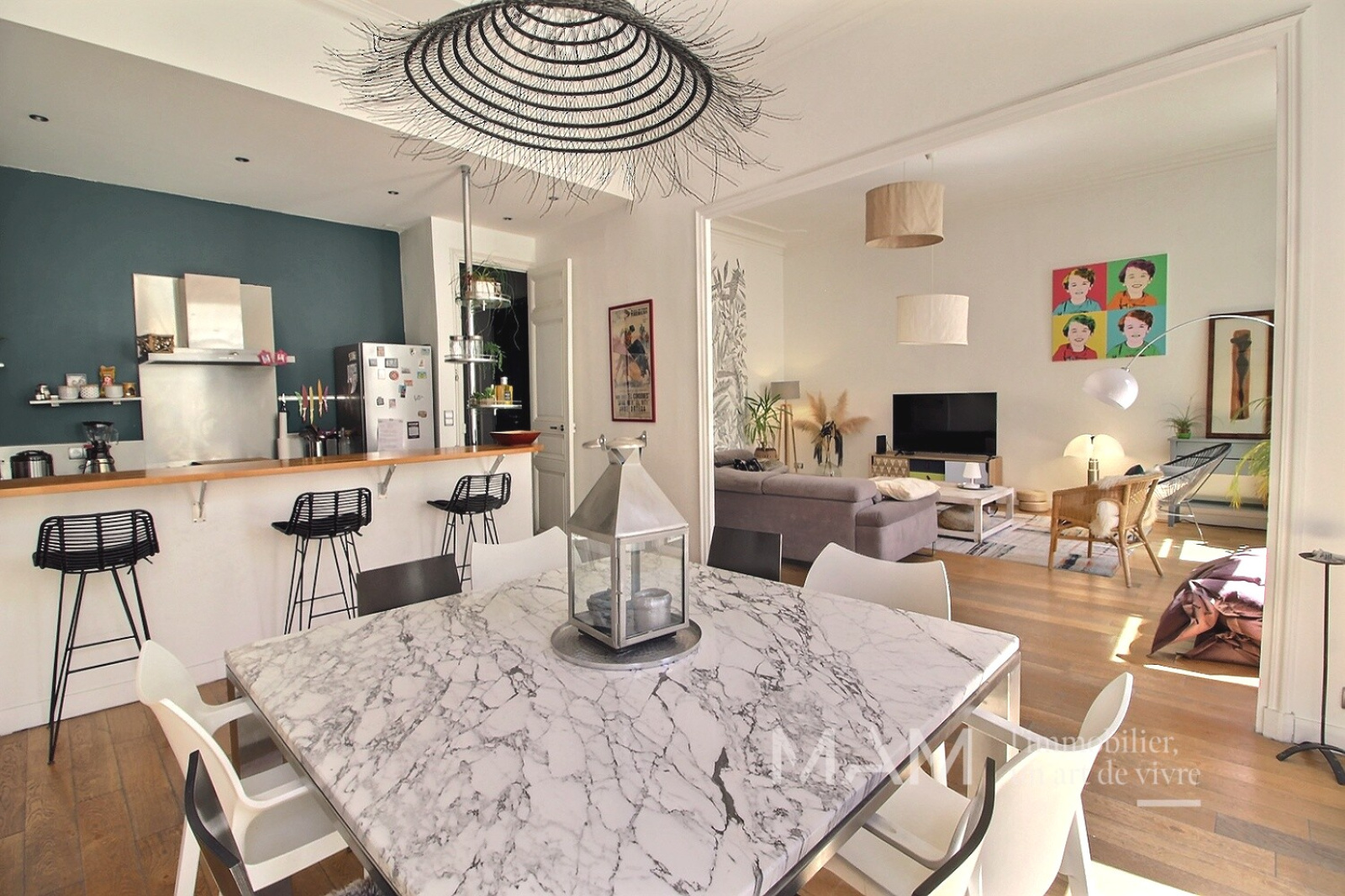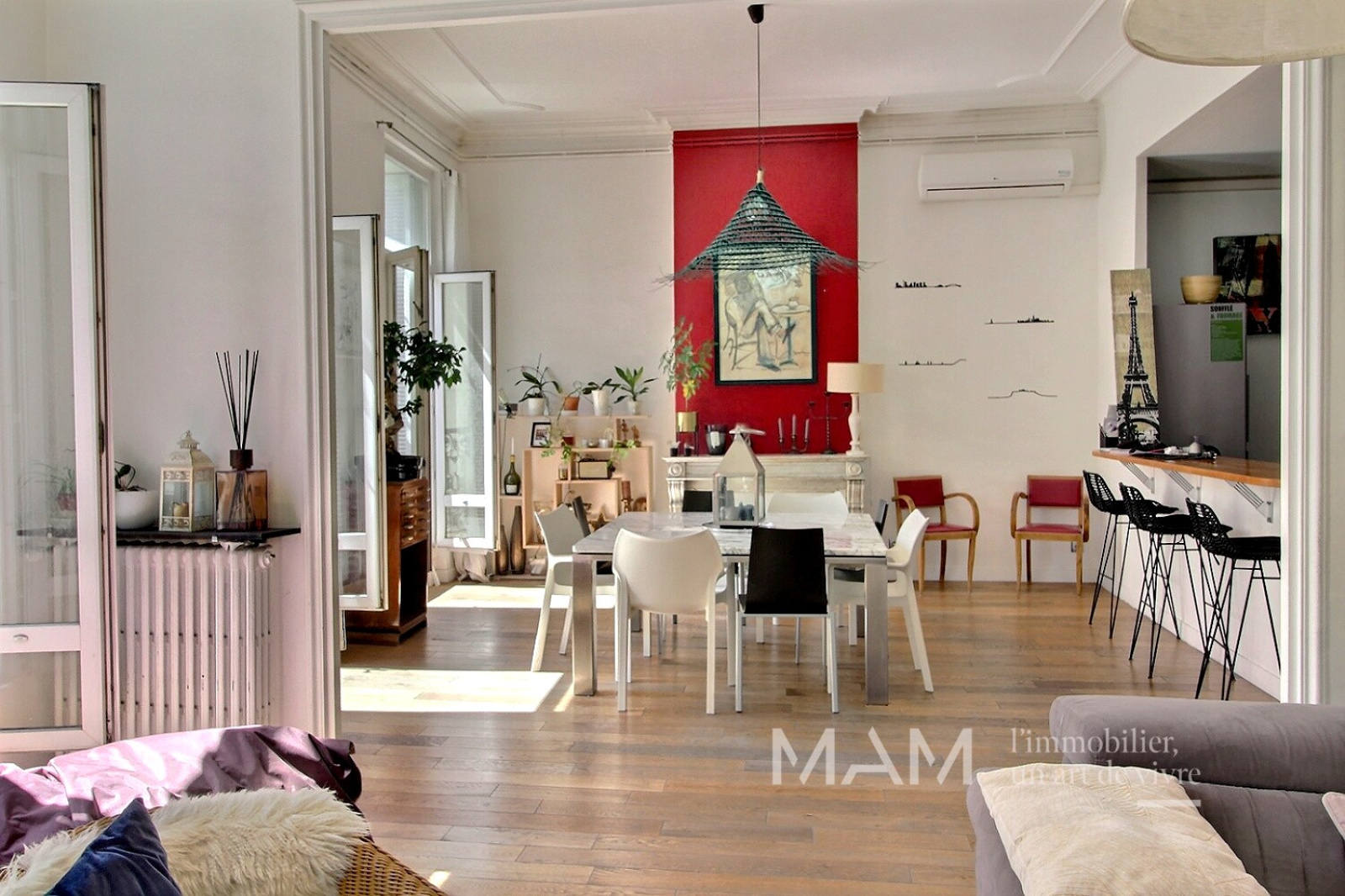 Seul au 2ème étage d'un immeuble remarquable début XXème en pierre de taille, ravalé en 2020. Une beau hall d'entrée nous emmène côté Ouest dans une grande double réception entièrement parquetée, très lumineuse avec ses quatre portes fenêtres. Une cuisine contemporaine équipée prolonge ce salon salle à manger bourgeois de 3M60 de hauteur sous plafonds. Côté Est, la seconde partie de l'appartement se compose de trois chambres dont une parentale de plus de 20 m2 et deux avec mezzanines.Salle de bain avec baignoire et douche, toilettes séparés, coin lingerie, dressing. Dans tout l'appartement, parquets de chêne, cheminées, hauteurs sous plafonds, moulures et corniches ont été préservés pour allier art de vivre contemporain et volulmes haussmanniens.Entièrement climatisé dans toutes les pièces. Pour plus d'informations, contactez Virginie Menuey au 0686467638
