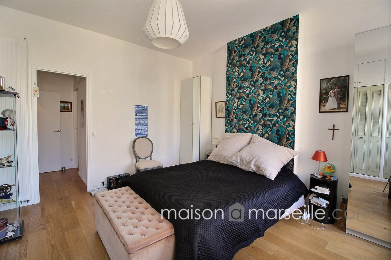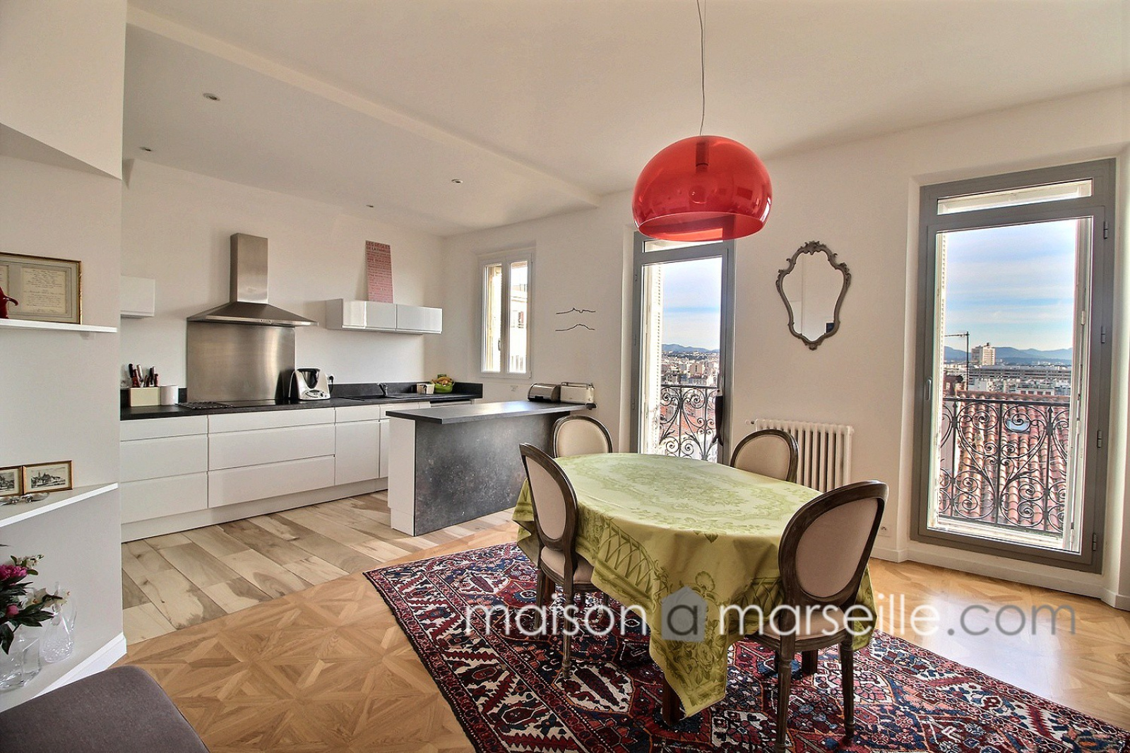 Bel appartement situé au 5ème et dernier étage d'un bel immeuble en pierre de taille. Totalement refait en 2 phases, en 2015 et 2017, cet appartement offre une jolie vue dégagée sur les toits de Marseille. Très clair et traversant, l'entrée distribue une salle-à-manger ouverte sur une cuisine équipée et un salon de 30 m2, bénéficiant de la lumière du matin. Côté ouest, les chambres toutes autour de 18m2. Une suite parentale indépendante avec sa salle de douche en béton ciré et de nombreux placards. Deux grandes chambres complètent la partie nuit. Un bureau ouvre avec une verrière sur l'entrée. Climatisation dans toutes les pièces. Nombreux rangements. Chauffage au gaz individuel. Cave au sous-sol. Appartement disponible début juillet 2019. Contact ML de Bryas 0603243478