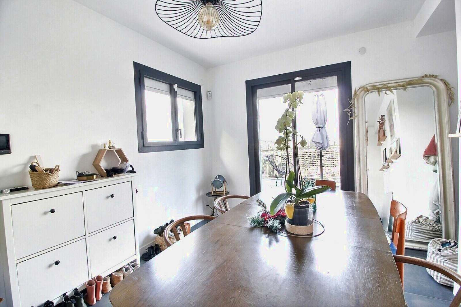 La maison de 120m² s'ouvre tout d'abord sur une très belle pièce à vivre avec cuisine américaine équipée et une salle à manger, le tout prolongé par une grande terrasse de 40m²