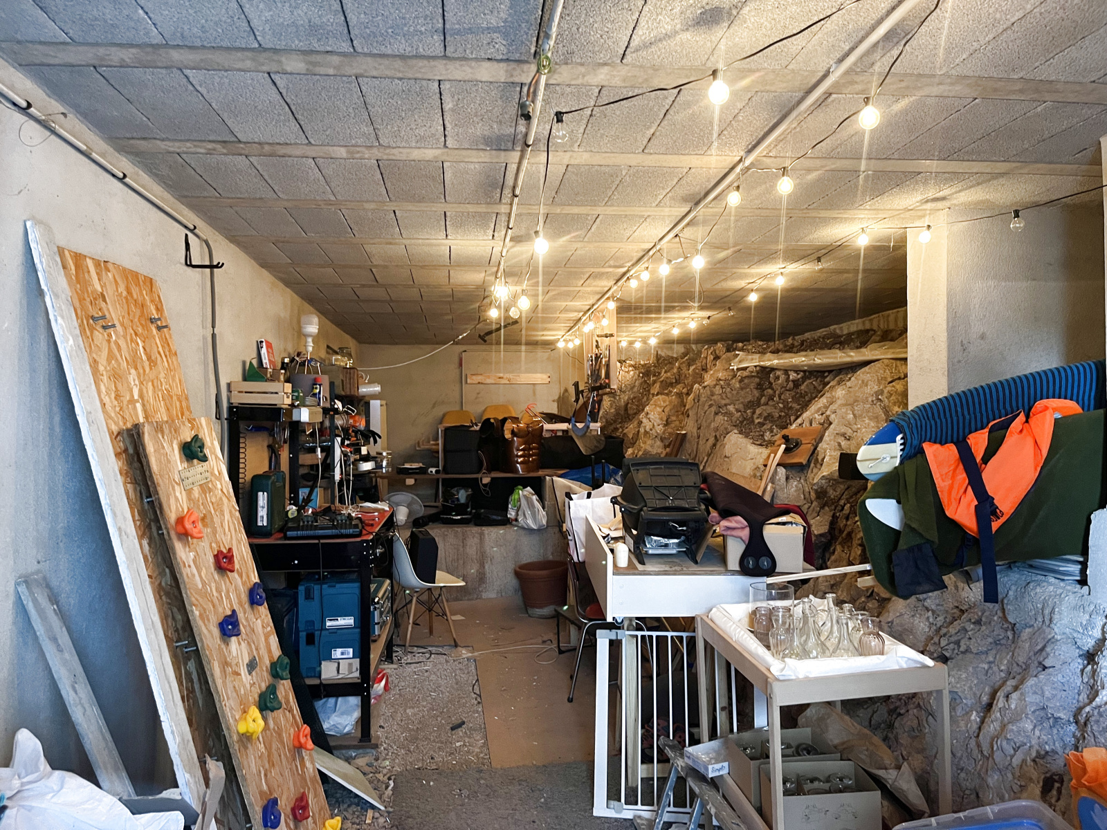 Cette maison bénéficie d'un très grand garage avec électricité et d'une cave saine de 25 m2