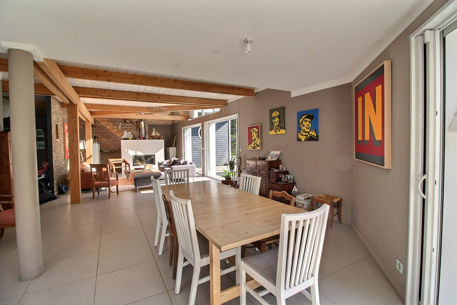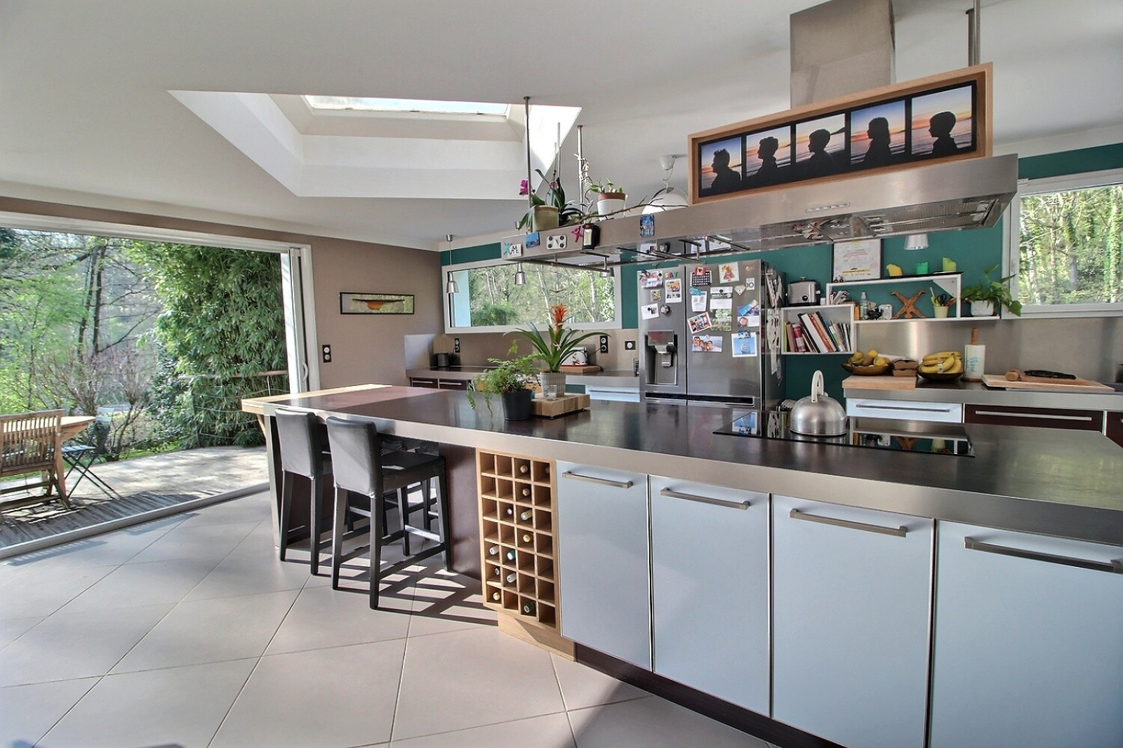 cuisine à l'Américaine donnant aussi directement sur terrasse pour un espace repas extérieur convivial,