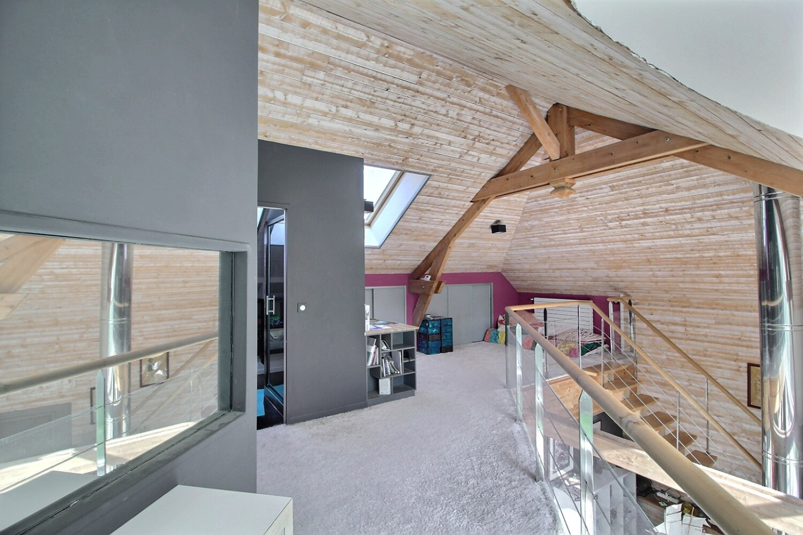 Enfin, le sous-sol a été complètement aménagé en 2021 pour vous offrir un home cinéma, un nouvel espace bureau et une buanderie.